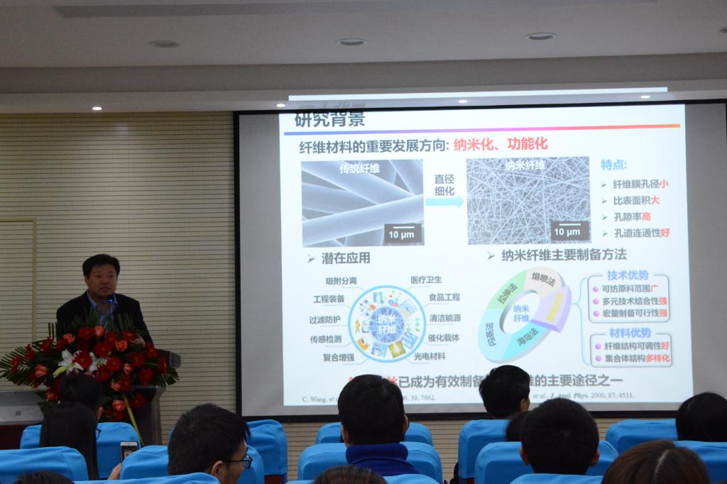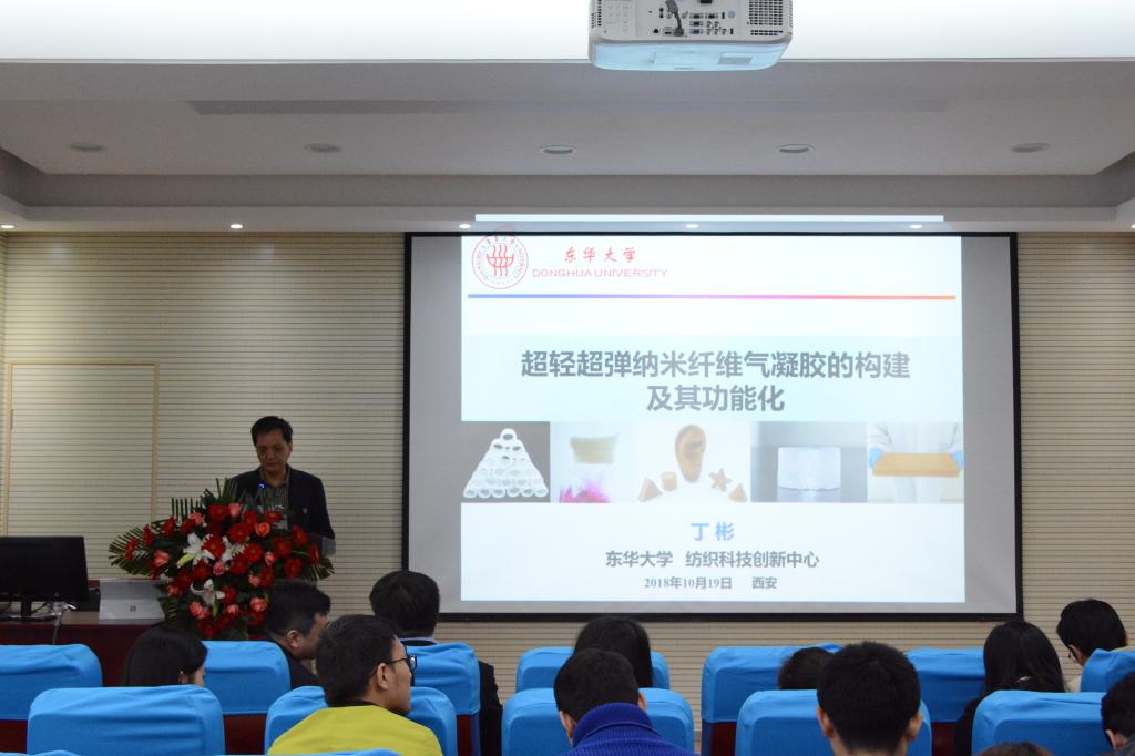 2018年10月19日下午,伟德国际victor1946邀请东华大学丁彬教授在纺织楼姚穆报告厅做了题为《超轻超弹纳米纤维气凝胶的构建及其功能化》的学术报告。公司党委书记胡小进、副经理王进美、教授张辉及部分研究生参加报告会。报告会由王进美主持。
