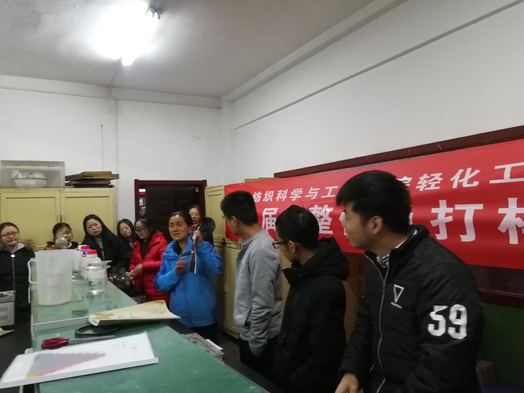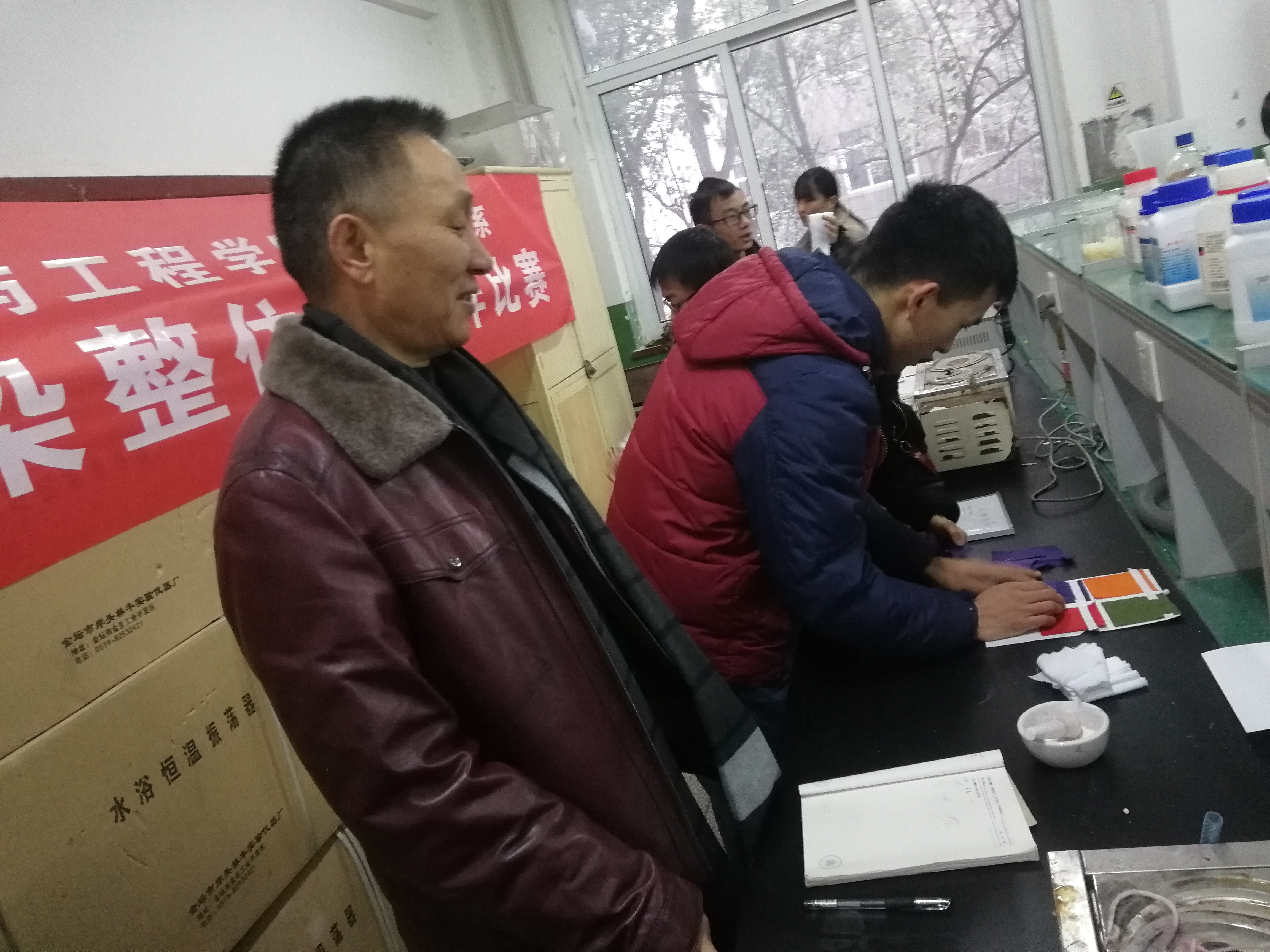 习智华对大赛情况进行介绍,他说染整打样仿色竞赛是轻化工程系打造的一个校内员工创新平台。本次大赛历时近一个月,2015级轻化工程专业员工全员参与。赛前,王雪燕和焦林老师为同学们详细介绍了比赛规则与评分标准,并让同学们通过潘通色卡的色棋测试和三角样卡的制作进行了赛前热身;赛中,习智华和任燕老师为同学们进行了配色、对色的分析指导;赛后,老师们通过电脑测色仪对每位员工的布样进行了严格的色差测试,最终通过色差值的大小评选出一二三等奖共26名。其中王洋、陈婷婷等4名员工获一等奖;马云、刘帆等10名员工获二等奖;李明、杜田等12名同学获三等奖。
