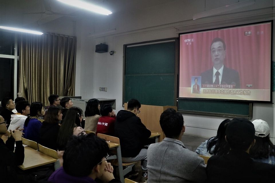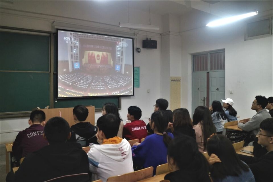 2019年3月5日,伟德国际victor1946团总支组织了团学科干部和习近平新时代中国特色社会主义思想研究会社团成员在A栋教学楼126教室集中学习观看“第十三届全国人民代表大会第二次会议和全国政协十三届二次会议”的开幕会视频。