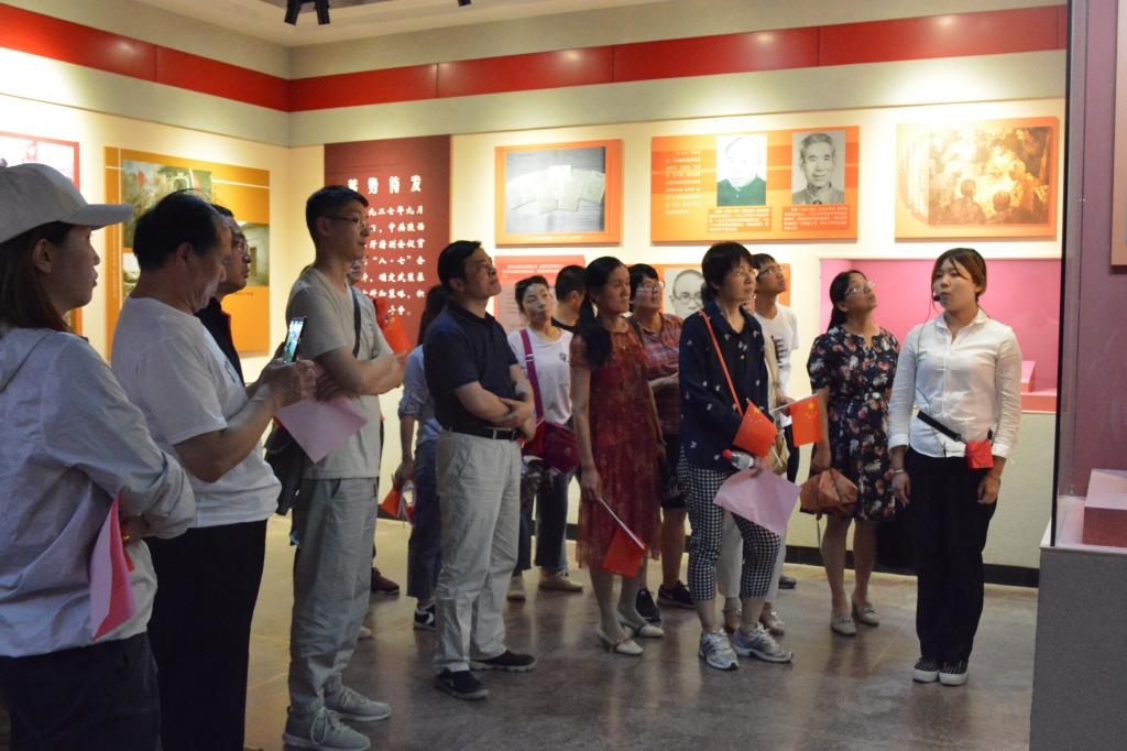 在渭华起义纪念馆内,大家认真观看了有关革命文物、图片和介绍,聆听了讲解员的详细讲解。纪念馆内一块长约20米、宽2米的巨型砖铺标语引人注目,内容是“同志们,赶快踏着先烈的鲜血前进啊”,充分表现了无产阶级革命者大无畏的革命精神。