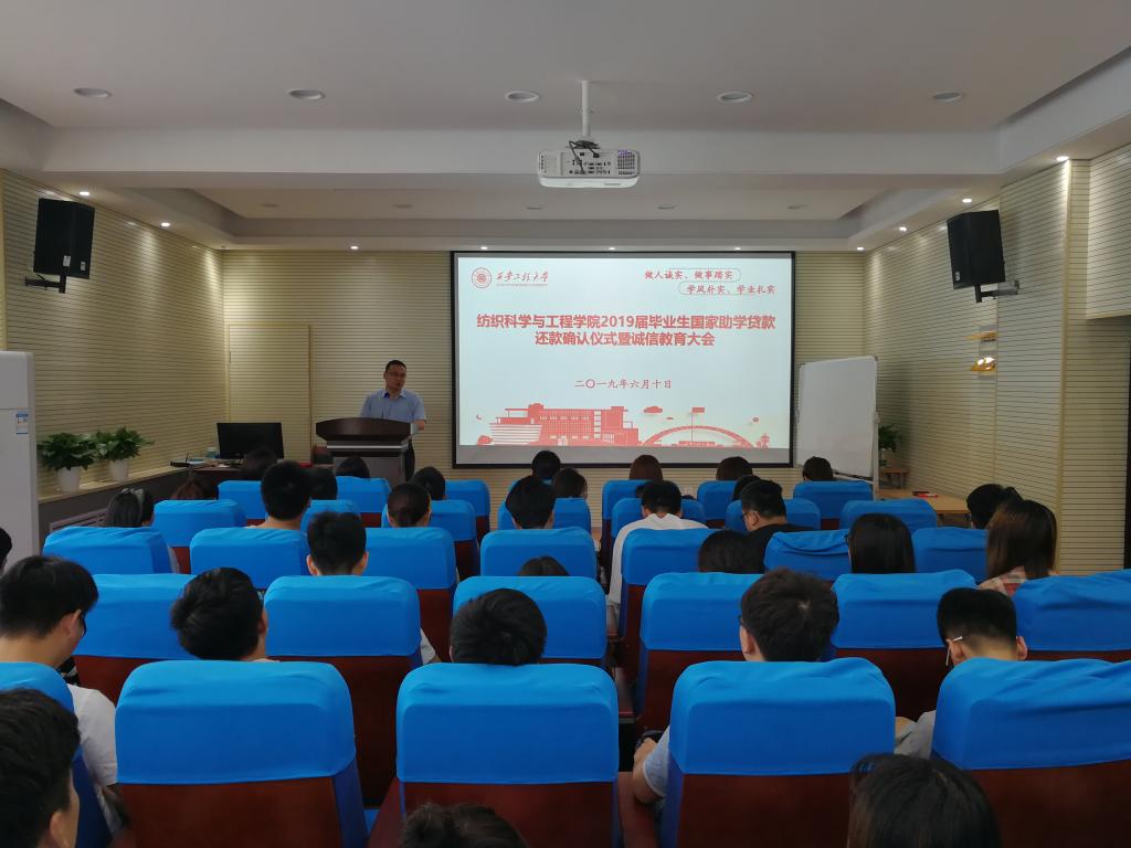 2019年6月10日10时,伟德国际victor1946在金花校区姚穆报告厅举行2019届毕业生生源地贷款还款确认仪式暨诚信教育大会,公司员工工作办公室主任赵勇进出席大会,2019届生源地贷款本科生和研究生参加大会。大会由辅导员邓恩征主持。
