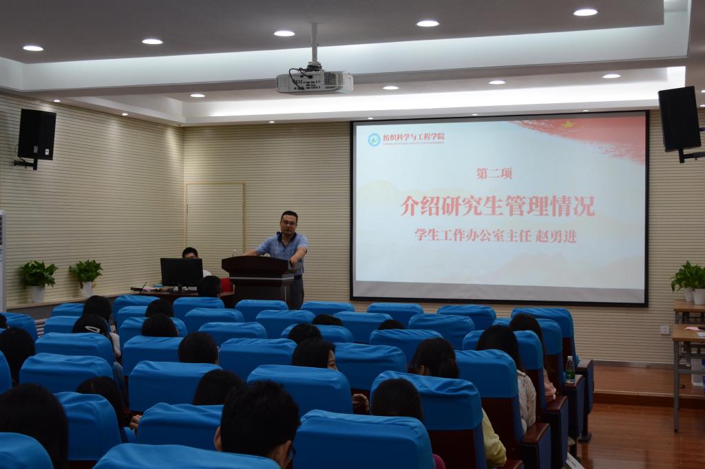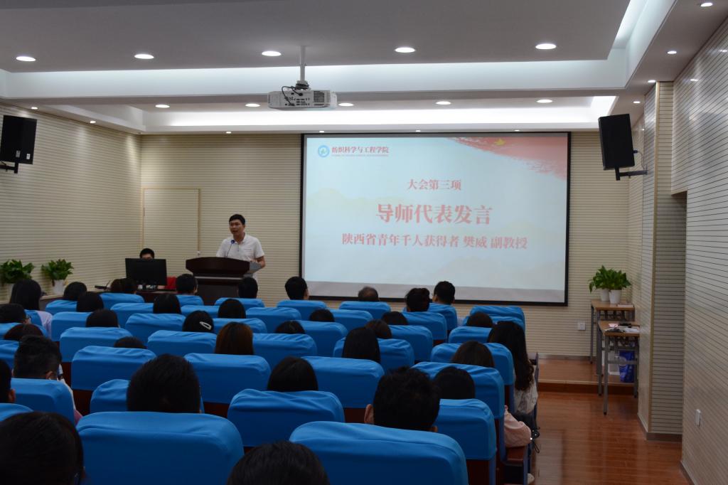 导师代表、陕西省青年千人获得者樊威发言。他结合自身求学、科研经历,从“梦想有多大,舞台就有多大”、态度决定高度、科研要耐得住寂寞等三个方面对同学们提出了建议。