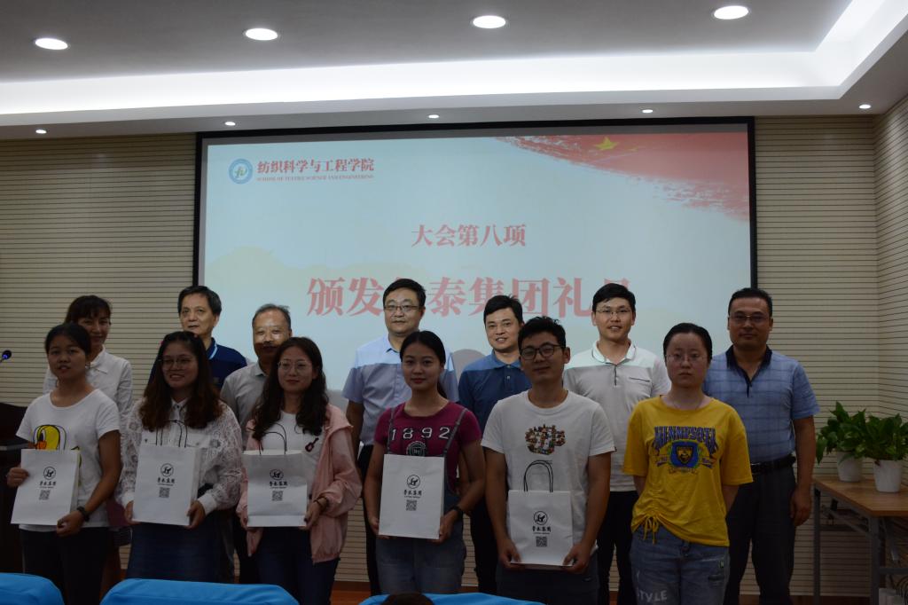 典礼上还举行了赠书和颁发纪念品仪式。李鹏飞和胡小进向新生代表赠送励志书《梁家河》,希望新同学们从《梁家河》中汲取思想营养和精神力量,学习习近平总书记在七年知青岁月中所体现出的为民造福的初心、追求真理的精神、埋头苦干的作风、攻坚克难的意志、复兴民族的梦想,并在今后研究生学习和人生中不断践行。公司领导班子成员向新生代表颁发山东鲁泰纺织有限公司赠送的纪念品。