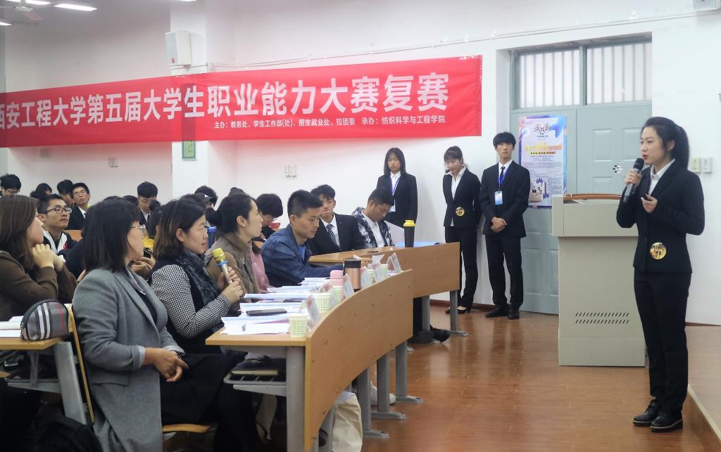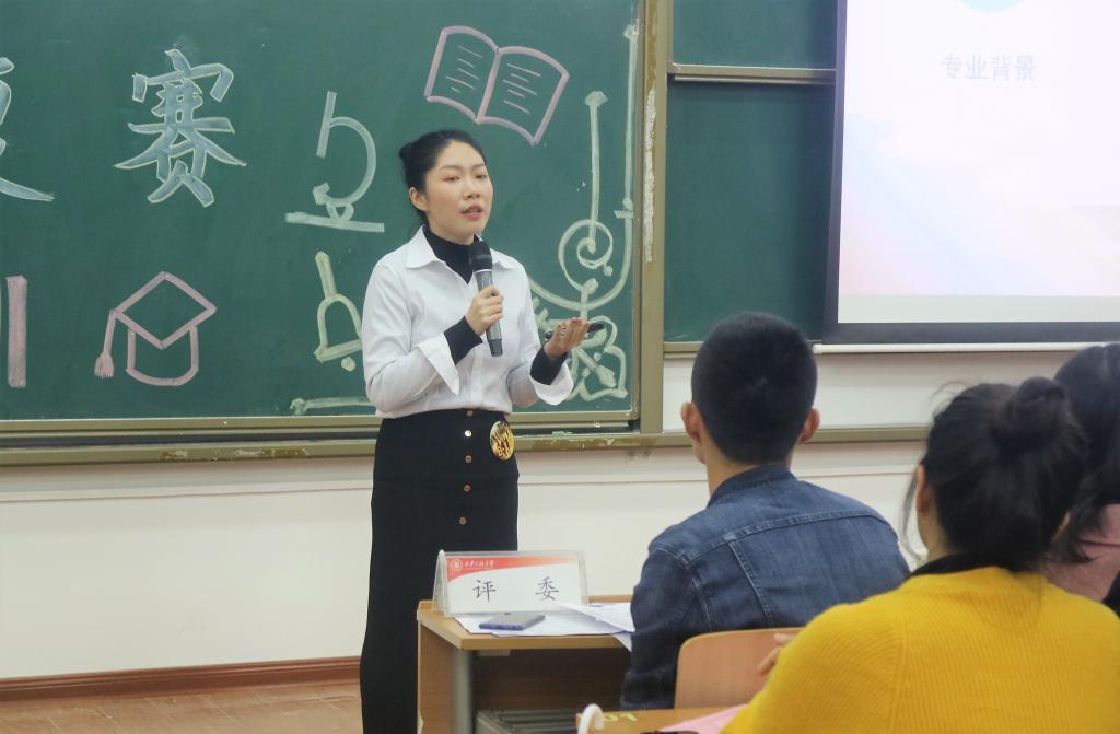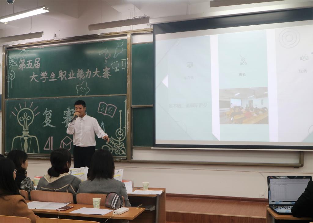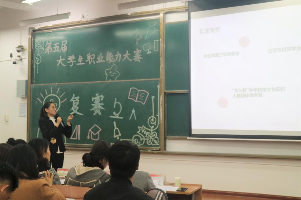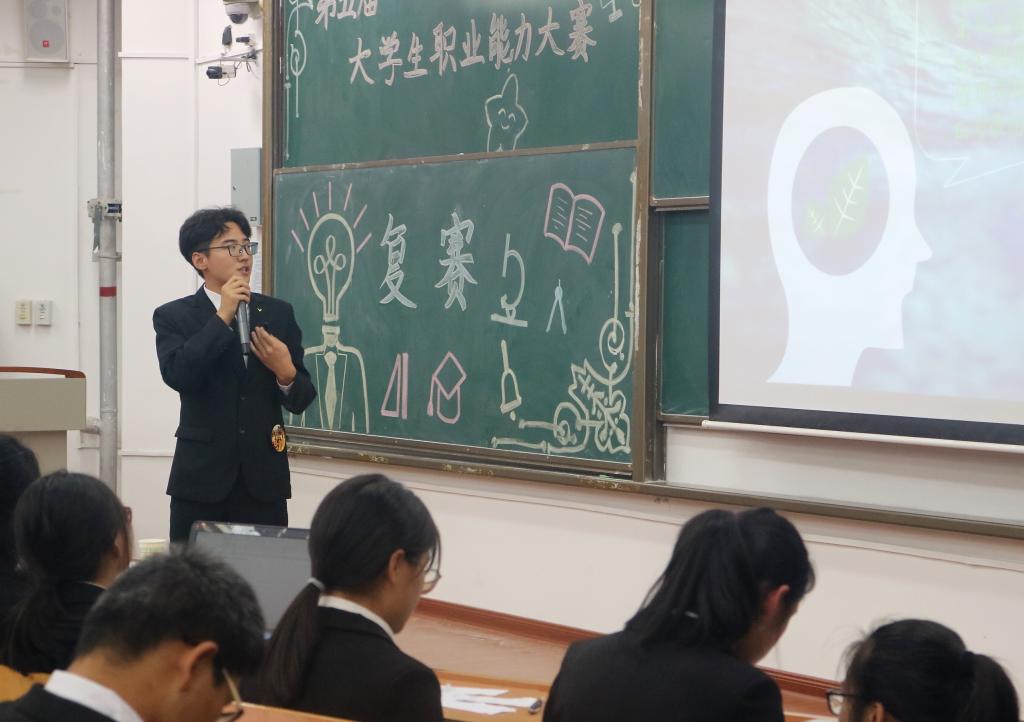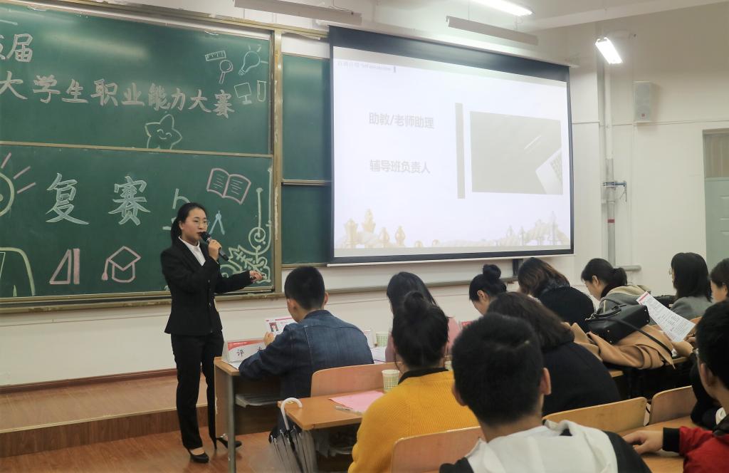 大赛伊始,主持人介绍到场评委及嘉宾,并宣布比赛正式开始。晋级复赛的13位选手通过“自我展示”“你问我答”两个环节向评委老师们展示自身风采。比赛选手来自不同公司、不同专业、不同年级,大家各具风格,表现出色。选手陈俊宇以其突出的表达能力、思维能力以及创新创业能力给在场评委、嘉宾留下深刻印象。选手李子龙模拟应聘纺织企业的品牌推广销售策划,在他的自我展示中不仅体现出他对纺织专业的了解,也表现出他对销售策划的灵活运用,在展示了个人专业技能的同时也充分的展现了他积极外向的性格特点。选手李慧敏应聘中学语文教师,在比赛中她自信大方的演讲博得了现场观众的阵阵掌声。比赛结束后,刘佳老师作总结点评。她指出了举办老员工职业能力大赛的重大意义,对本次大赛中选手们的精彩表现予以肯定。她希望同学们在大学里能积极参加各类竞赛活动,不断提升语言表达能力、沟通交流能力以及主动学习能力。最后,主持人宣布了晋级决赛的选手名单:陈俊宇、赵凯熙、梁凡超等八名选手,现场的嘉宾和评委为以上选手颁发晋级卡并表示祝贺。