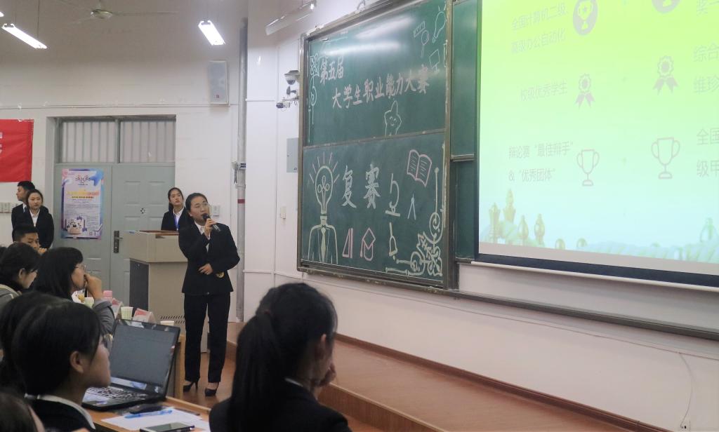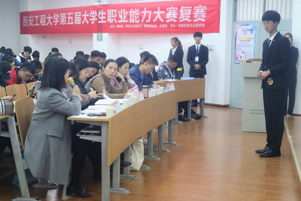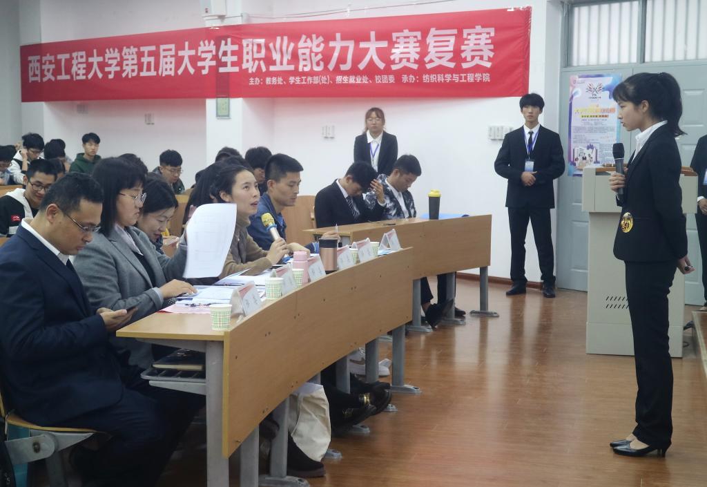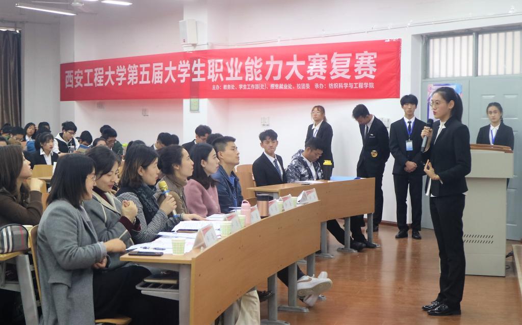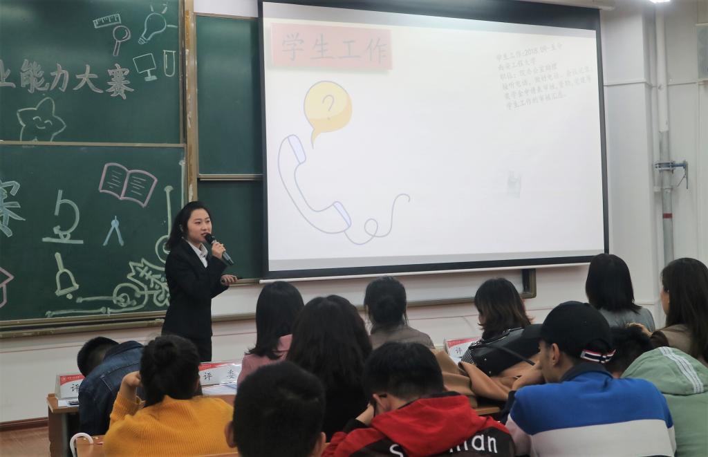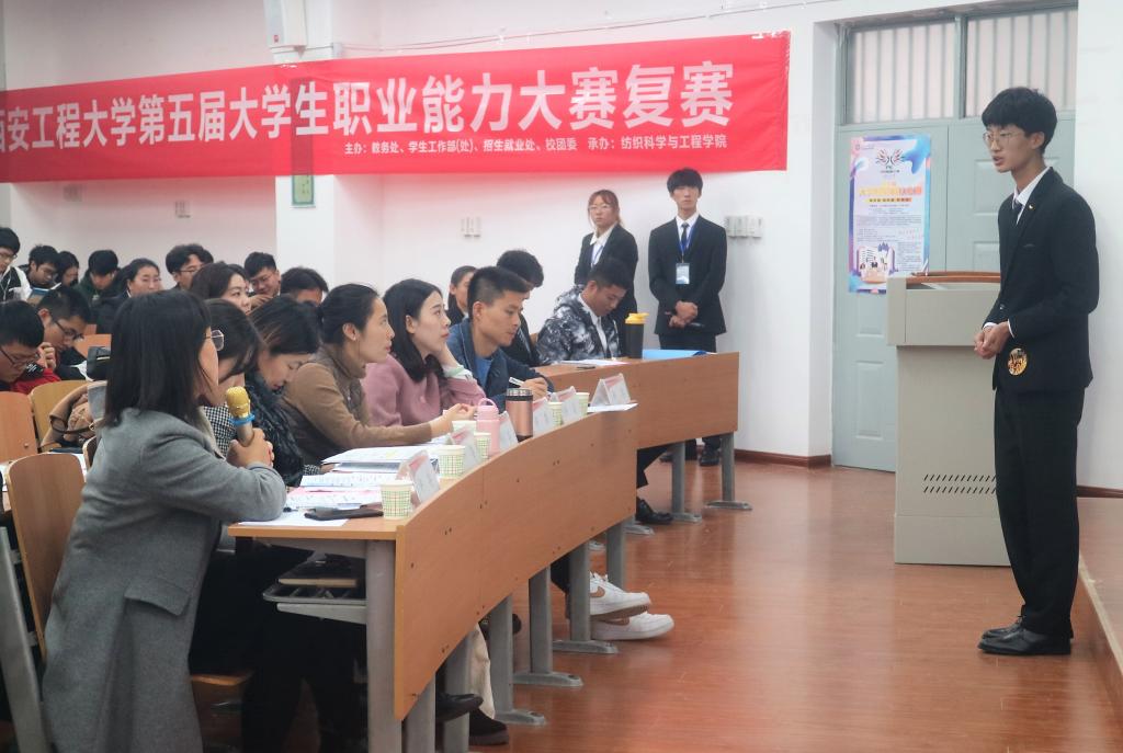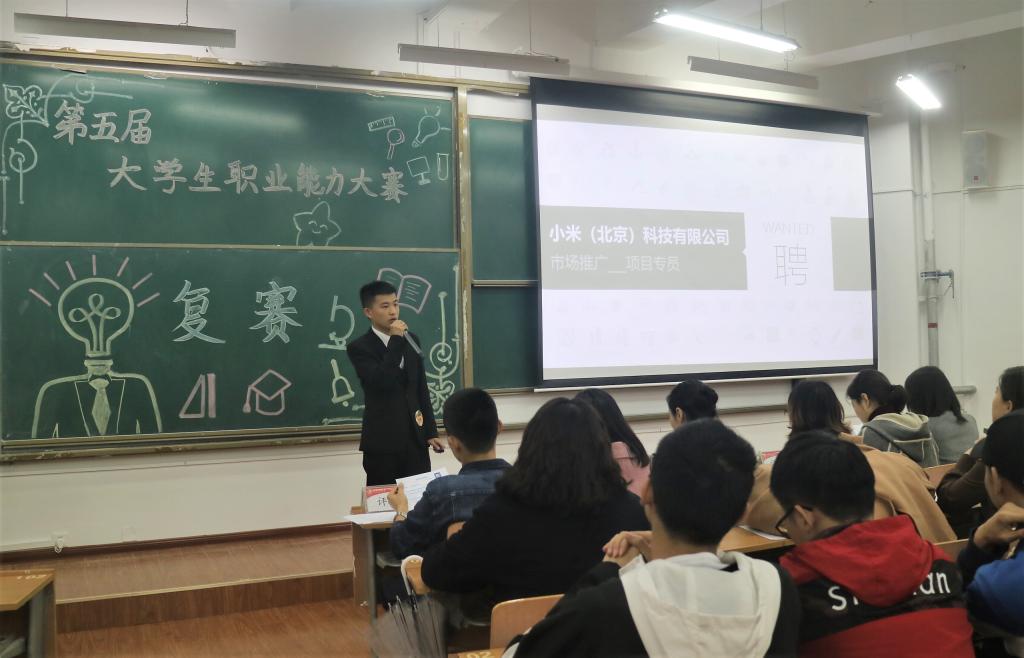 大赛伊始,主持人介绍到场评委及嘉宾,并宣布比赛正式开始。晋级复赛的13位选手通过“自我展示”“你问我答”两个环节向评委老师们展示自身风采。比赛选手来自不同公司、不同专业、不同年级,大家各具风格,表现出色。选手陈俊宇以其突出的表达能力、思维能力以及创新创业能力给在场评委、嘉宾留下深刻印象。选手李子龙模拟应聘纺织企业的品牌推广销售策划,在他的自我展示中不仅体现出他对纺织专业的了解,也表现出他对销售策划的灵活运用,在展示了个人专业技能的同时也充分的展现了他积极外向的性格特点。选手李慧敏应聘中学语文教师,在比赛中她自信大方的演讲博得了现场观众的阵阵掌声。比赛结束后,刘佳老师作总结点评。她指出了举办老员工职业能力大赛的重大意义,对本次大赛中选手们的精彩表现予以肯定。她希望同学们在大学里能积极参加各类竞赛活动,不断提升语言表达能力、沟通交流能力以及主动学习能力。最后,主持人宣布了晋级决赛的选手名单:陈俊宇、赵凯熙、梁凡超等八名选手,现场的嘉宾和评委为以上选手颁发晋级卡并表示祝贺。
