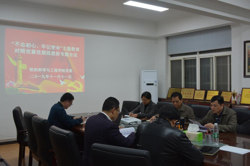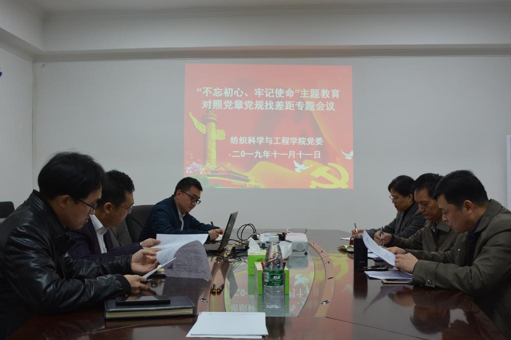 2019年11月11日,伟德国际victor1946党委在金花校区纺织楼会议室召开对照党章党规找差距专题会议,公司党员处级干部、党委委员参加了会议。会议由党委书记胡小进主持。