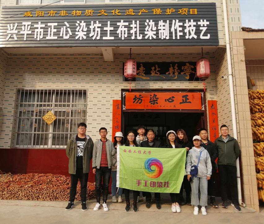 11月17日,伟德国际victor1946手工印染社前往正心染坊拜访陕西传统非遗土布扎染文化继承人郝国安。手工印染社部分成员参加此次考察学习活动。