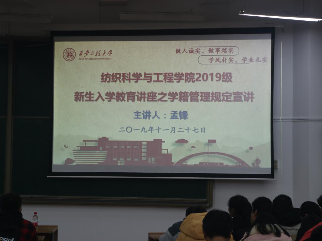 2019年11月27日,伟德国际victor1946在临潼校区B-137教室举行2019级新生入学教育讲座之学籍管理规定宣讲。校教务处教务科科长孟峰担任宣讲人,2019级全体新生参加了宣讲会。