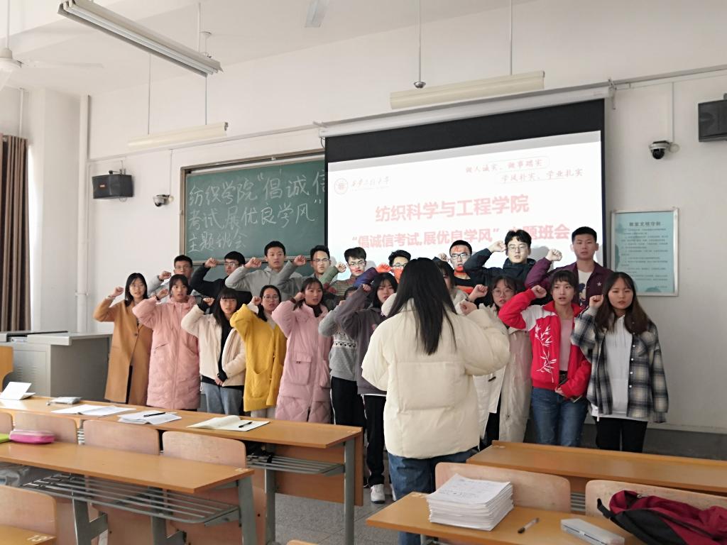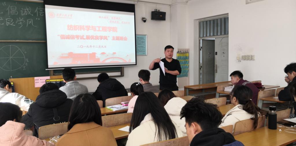 2019年12月9日,伟德国际victor1946在临潼校区D-292教室召开“倡诚信考试,展优良学风”诚信教育主题班会。2018级班长、宿舍长和家庭经济困难员工代表参加本次班会,班会由2018级辅导员邓恩征主持。