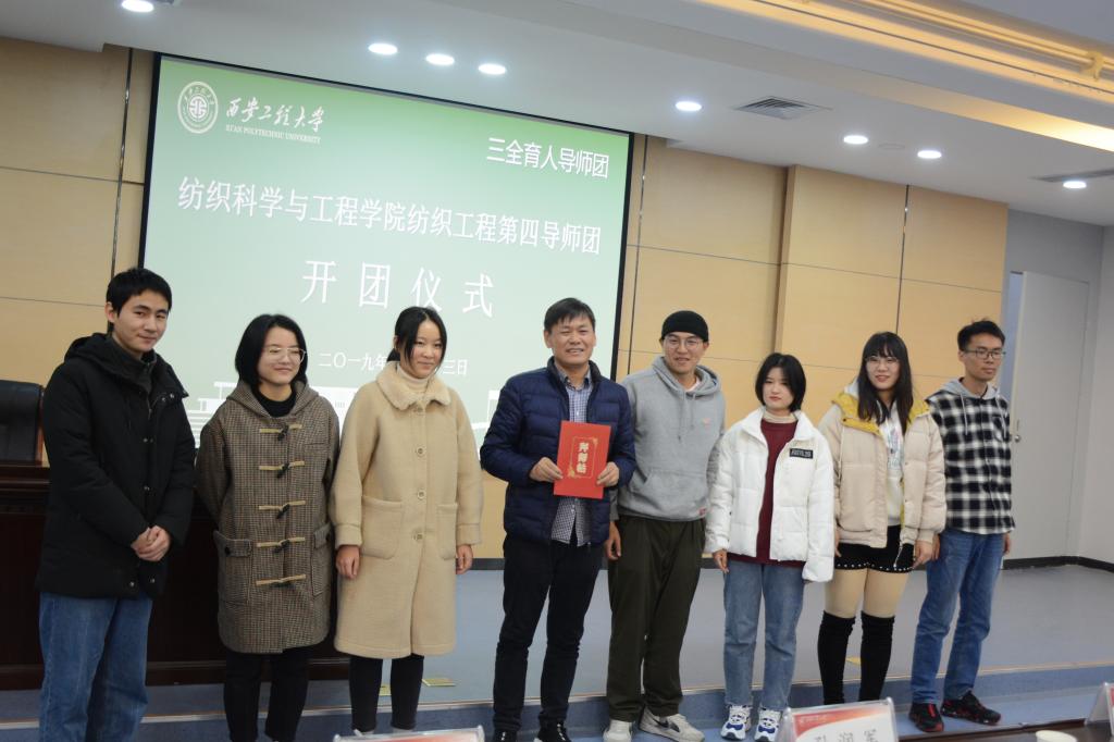 开团仪式上,各导师团团长向同学们介绍了导师团成员,校员工处副处长、纺织工程第四导师团导师杨建军和各导师团秘书解读了公司《伟德国际victor1946“三全育人导师团”实施办法》。教务处处长万明教授在开团仪式讲话中指出,“三全育人导师团”是本科班主任制度和导师制的改进与延伸,是“以员工为中心”教学理念的贯彻与落实,是“员工形成性评价”工作的有力支撑。公司在开团仪式上还举行了隆重的授团旗仪式和拜师仪式,公司“三全育人导师团”领导小组组长、公司经理孙润军向团长授导师团团旗,同学们向导师们呈送了自己签名的拜师帖,和导师们合影留念,弘扬了尊师重教的中华传统美德。