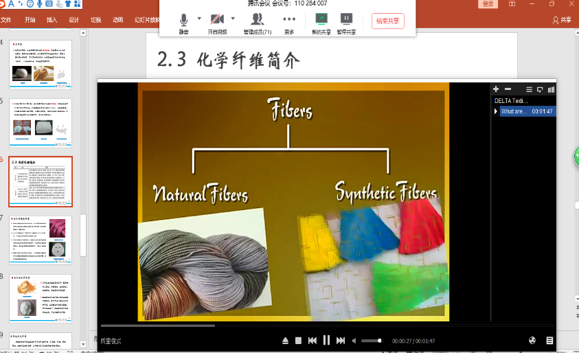 非织造材料与工程专业窦皓老师采用“腾讯会议+雨课堂+智慧树+线下作业+QQ群答疑”的网络教学模式开展线上教学。腾讯会议直播质量高,实时性好,要求员工举手进行语音回答或者文字互动,激发了员工的新奇性与热情。通过分享屏幕,为员工播放相关视频或者展示其他教学课件和辅助工具。提前或者延后将上课公告、作业、课件或者其他资源上传到雨课堂学习库,方便员工提前预习和课后巩固,通过这些方式,使员工能够跟上教学内容与进度,获得了良好的教学效果。