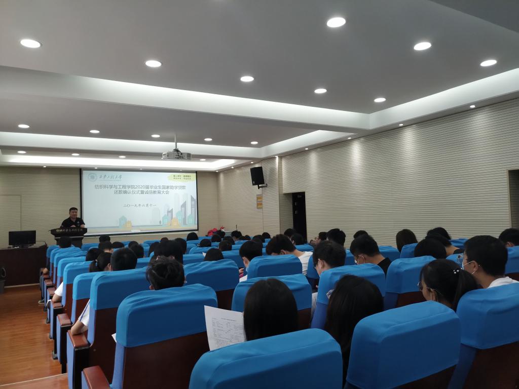 2020年6月11日,伟德国际victor1946在金花校区姚穆报告厅举办2020届毕业生生源地贷款还款确认仪式暨诚信教育大会,大会由公司资助辅导员邓恩征主持,公司2020届全体生源地贷款本科生参加了大会。