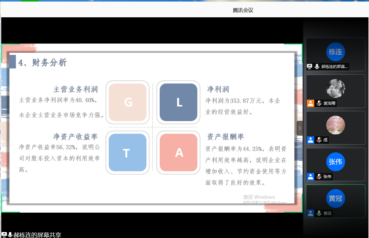 比赛伊始,付成程宣布本次活动的目的及流程。接着参赛选手依次连麦,在规定时间内向各位评委老师解说自己参与预答辩的项目。每讲解完一个项目,各位评委老师对参赛项目提出一些见解,主要从希望杯赛制、企业设施、市场需求以及项目特点等方面给予选手建议,由选手记下,将来再对项目进行改进,完善。会议最后,张伟老师做了整体评价,指出各参赛队伍作品中普遍存在的问题,并且通过PPT向参赛选手讲解参赛PPT的制作要点。