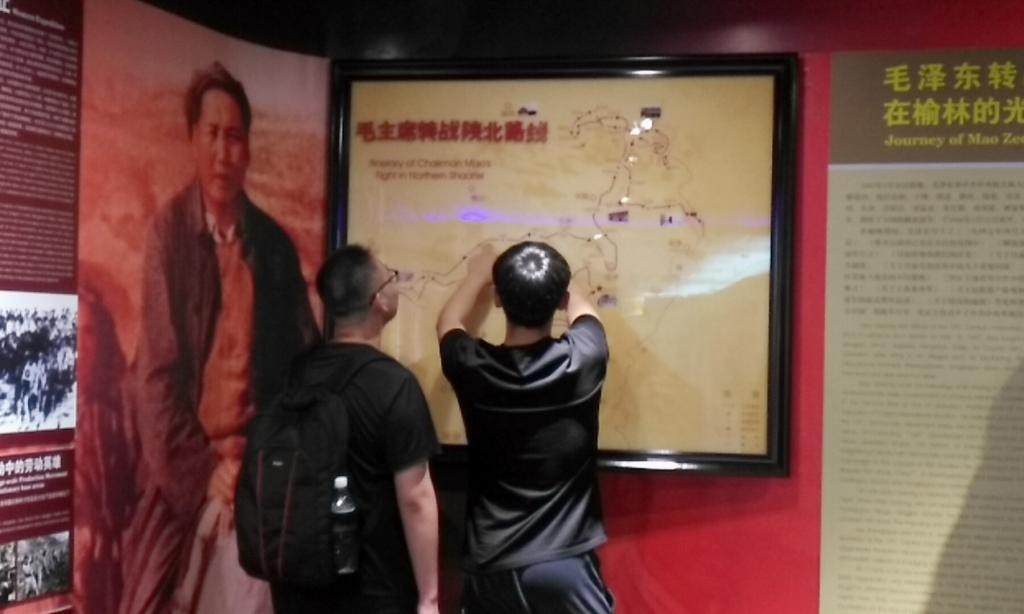 榆林市展览馆以《见证榆林》为主题,采用档案形式来记录历史的变迁,分为印象榆林、红色榆林、影像榆林、民俗榆林、人物榆林、今日榆林、馆藏珍品七个部分。通过应用投影仪、电子沙盘、纪录片等一系列多媒体技术,讲述了榆林地域环境、历史传统、文化底蕴和红色革命的故事。红色榆林展区更是榆林档案展览馆的一个重要部分,深度挖掘了榆林当地红色教育资源。主要从陕北革命的发源地、红军东征的出发点、红军长征的落脚点、解放战争的转折点四个方面,讲述了红军入陕后,发生在榆林大地上的红色革命故事。而最令人印象深刻的是榆林的总貌图,通过沙盘的方式将榆林的地形地貌、各县区的面积位置、主要交通枢纽等呈现人们眼前,直观的看待榆林。