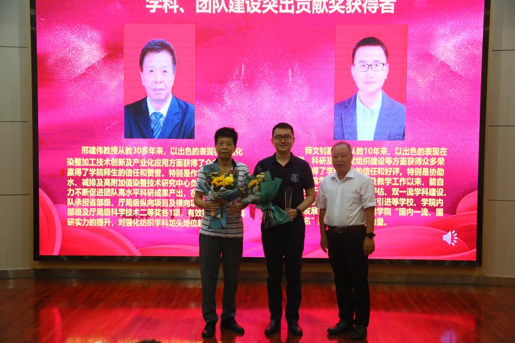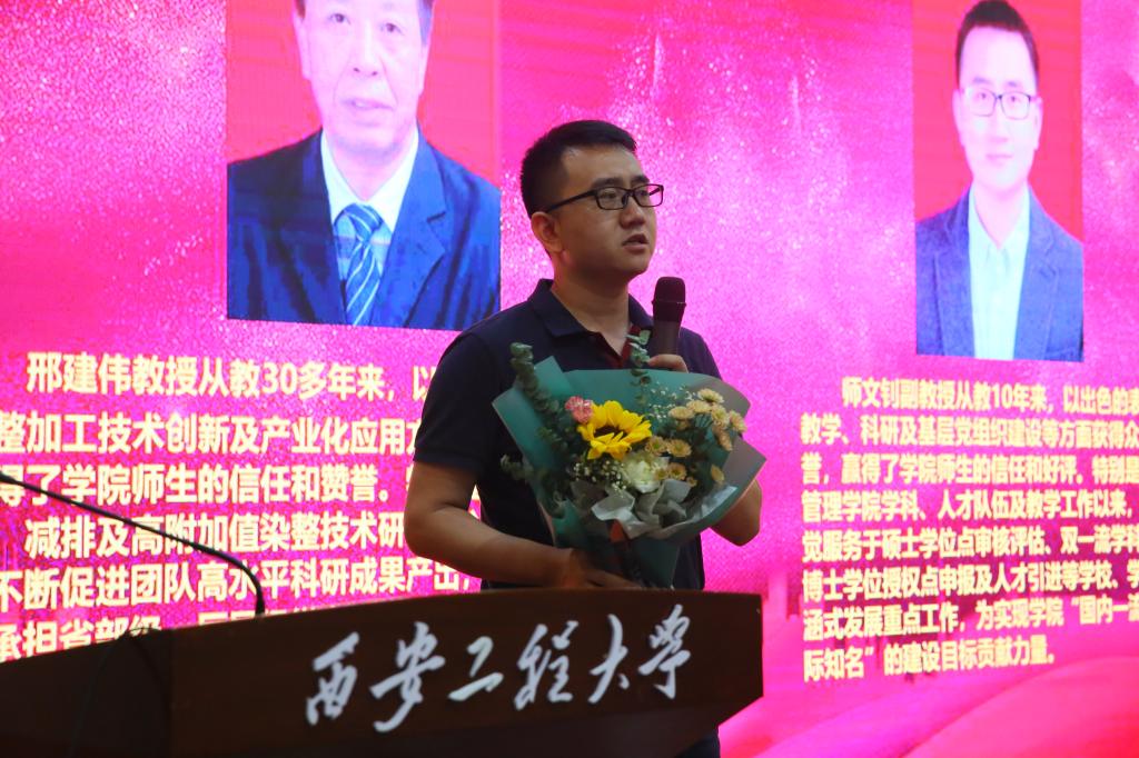 公司领导分别为受表彰教师颁发奖杯,员工代表为受表彰教师献花。表彰期间,主持人即兴与4名受表彰教师进行现场交流,他们分别从教书育人、科学研究、一流团队建设、疫情防控技术咨询与服务等方面和与会师生分享了自己的感悟和体会。