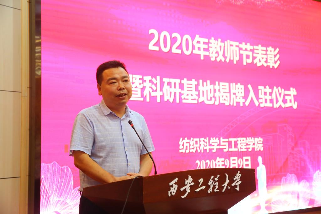 李鹏飞在讲话中指出,团队强则科研强,科研强则公司强,在公司党政的大力支持下,公司科研实验环境得到了有效改善,在今年教师节表彰这一特殊日子,公司举行科研基地揭牌和入驻仪式,是公司向全体教师发出的做强公司科研的最强音,是迈向研究型公司建设的新征程、新起点。他希望全院教职工要不辜负公司党政对伟德国际victor1946的大力支持和殷切期望,统一思想,凝聚共识,大力弘扬“西迁精神”,聚焦目标,攻坚克难,深化改革,为做强纺织学科,为建设“国际知名、国内一流”的研究型公司而努力奋斗。(详细讲话内容见附件)