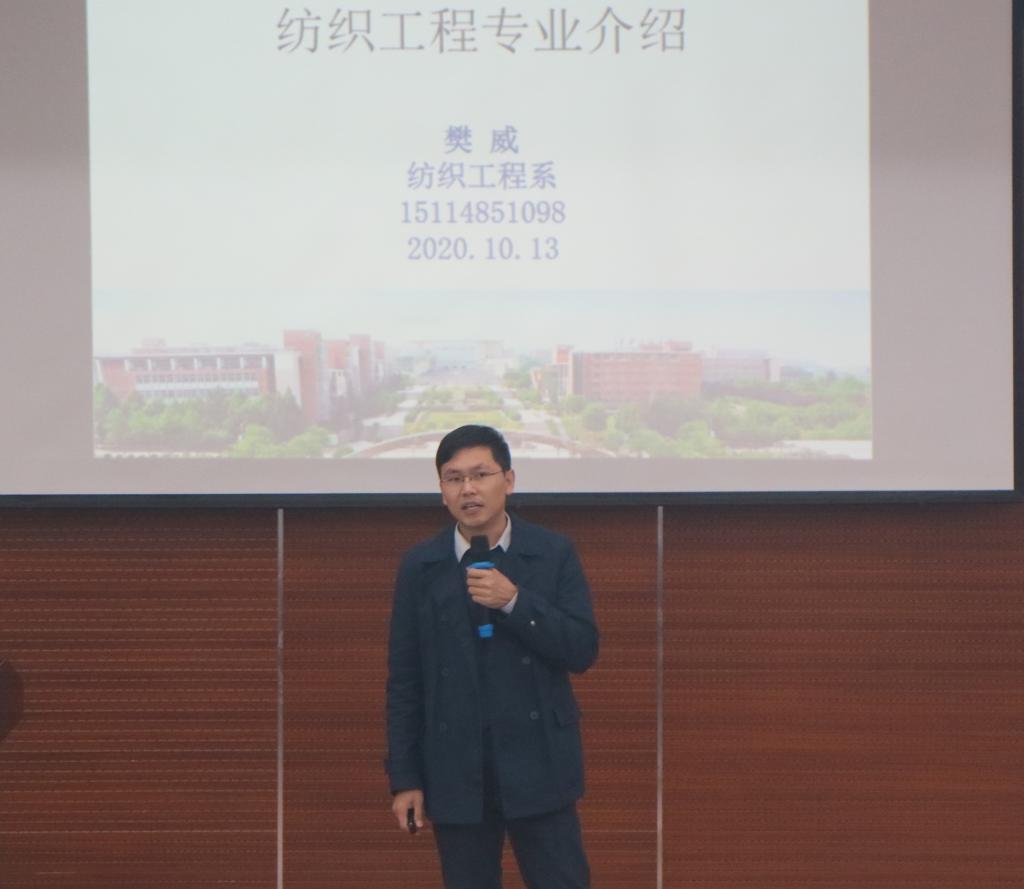 樊威、王雪燕、韩玲分别为纺织工程、轻化工程和非织造材料与工程的新生就本专业基本知识、课程要求、就业需求、未来发展前景等做了讲授,使同学们对所在专业有了基本的认知,为各自制定合理的老员工活与学习规划提供了指导。