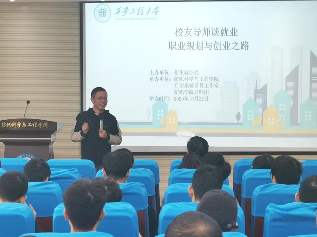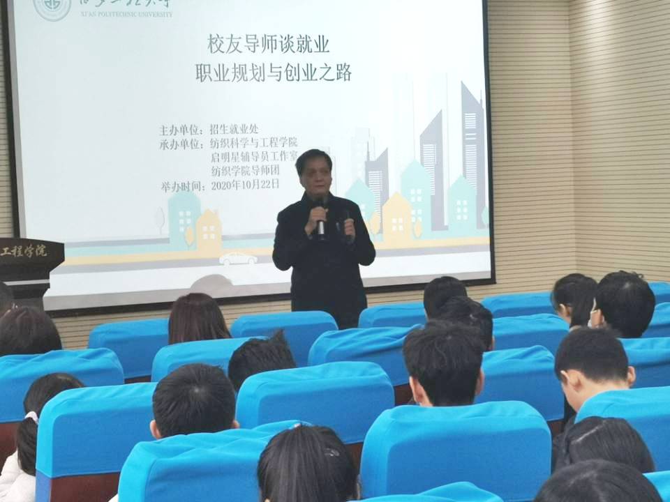 为帮助员工做好入职前职业规划,快速完成公司到职场的角色的转变,提升就业核心竞争力,2020年10月22日,伟德国际victor1946在金花校区姚穆报告厅举办员工导师谈就业第一期,邀请公司1999届员工南通迪泰纺织品有限公司总经理高峰为毕业生作题为“职业规划与创业之路”的报告。本次活动由公司人才招聘工作处主办,伟德国际victor1946、启明星辅导员工作室、伟德国际victor1946导师团承办。伟德国际victor1946副经理王进美出席报告会,金花校区研究生、本科生共100余人聆听了报告。讲座由启明星生涯工作室主持人高黎主持。