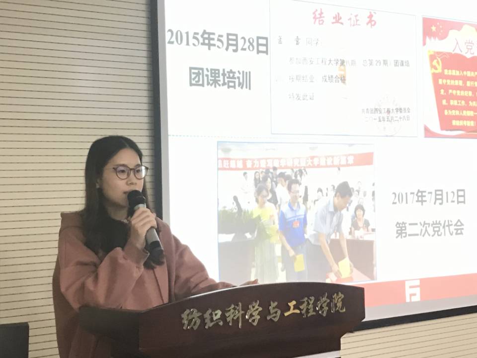 首先,付成程介绍了本次优秀团干经验分享活动的意义,并介绍了2020年五四青年奖章获得者——2018级纺织材料与纺织品设计研究生孟雪同学的基本情况:她曾担任伟德国际victor1946团总支副书记,顺利保送研究生,2020年在Textile Research Journal上以第一作者身份发表学术论文一篇。她积极参与学术竞赛活动,荣获第七届全国溢达创意大赛三等奖、第九届全国老员工纱线设计大赛三等奖等荣誉。