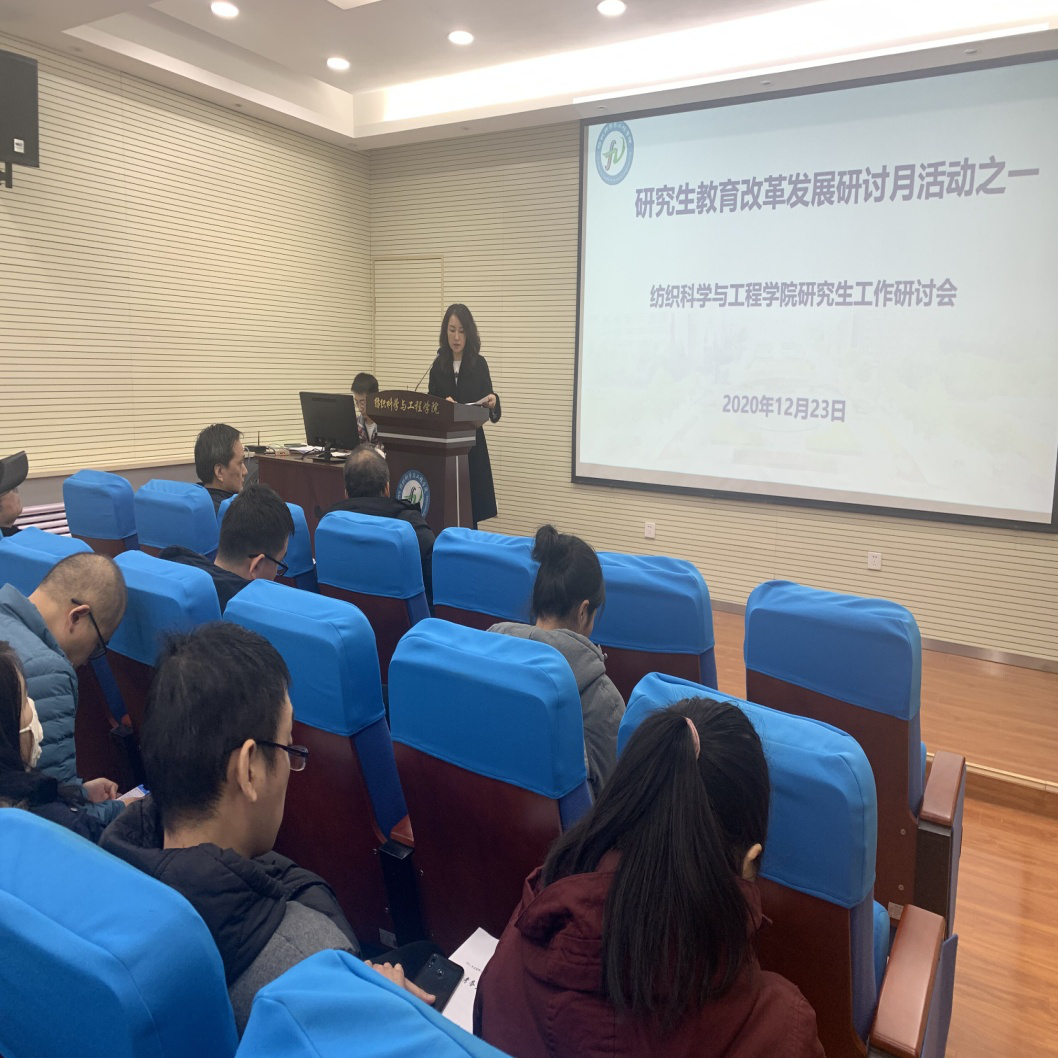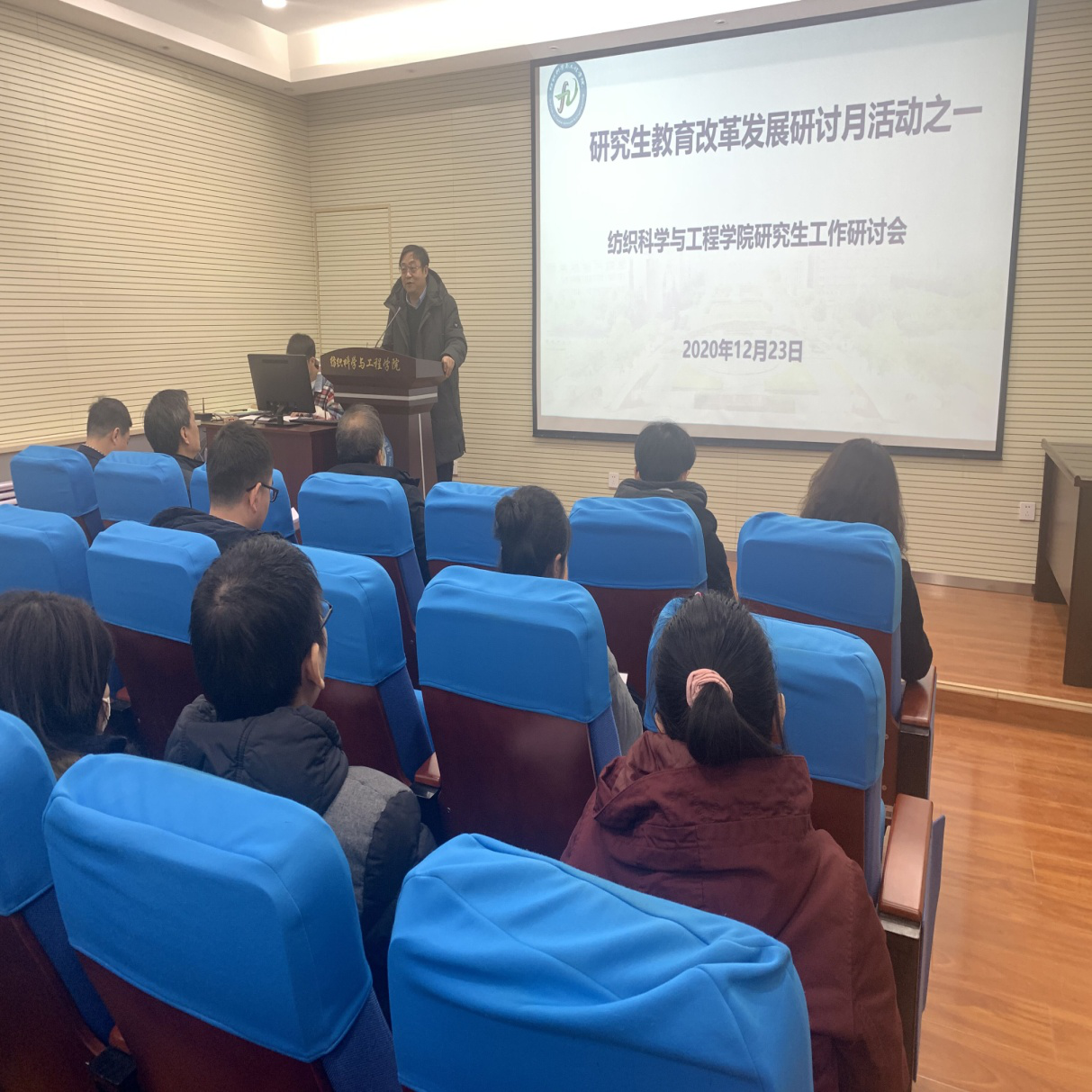 2020年12月23日,伟德国际victor1946在姚穆报告厅举办研究生教育改革培养研讨会。大会特邀经纬客座教授顾伯洪作题为“纺织学科与纺织类教师与研究生质量提升方案”的报告,传达学习全国、全省研究生教育会议精神。同时会议对公司2021年研究生教育改革等各项工作进行了安排部署,公司党政领导班子成员和全体教职工参加会议,会议由公司副经理王进美主持。