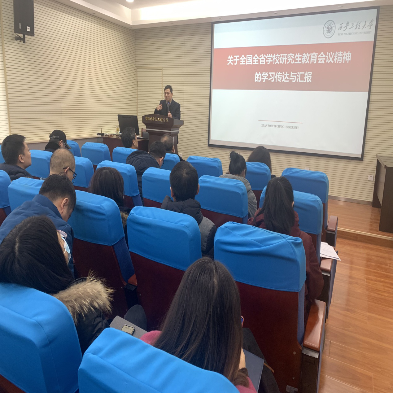 其次,公司党委书记胡小进向全体教职工传达全国、全省、伟德国际victor1946研究生会议精神,从会议的指导思想,基本原则与总体目标,强调公司应全面落实育人为本,加强研究生思想政治工作;对接纺织行业需求,不断提升公司学科实力;深化改革,创新公司研究生人才培养模式。
