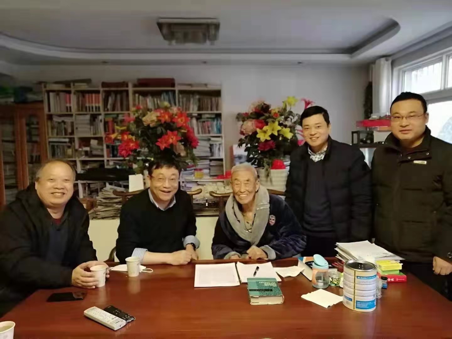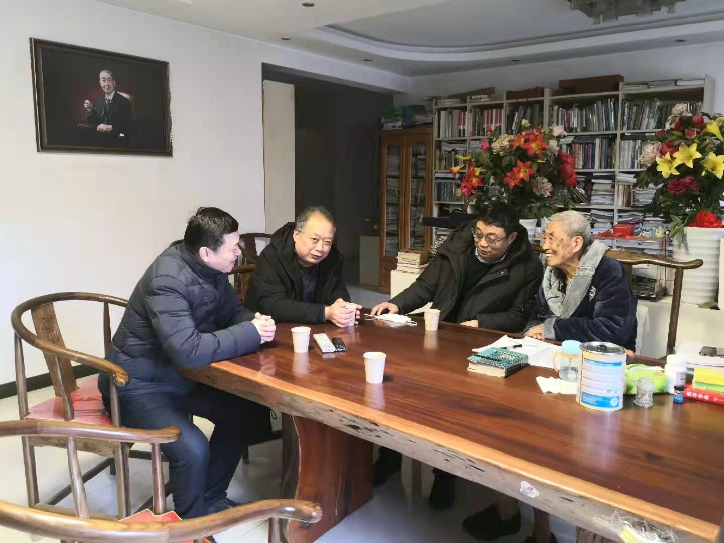 在姚穆院士家中,李鹏飞询问了姚穆院士身体状况,代表公司全体师生向姚穆院士表达了新年祝福,并汇报了公司和公司在过去一年推进改革发展和一流团队建设中取得的主要成绩。看到姚穆院士身体状况很好,还在查阅英文学术文献,表示由衷高兴和敬佩。他说,姚老师年逾九旬还坚持学习,的确是后辈们学习的楷模,衷心祝愿姚老师健康长寿,继续关心、支持公司和公司发展。姚穆院士听到公司和公司在过去的一年取得了显著的成绩非常高兴,并祝愿公司在新的一年取得更大成绩。