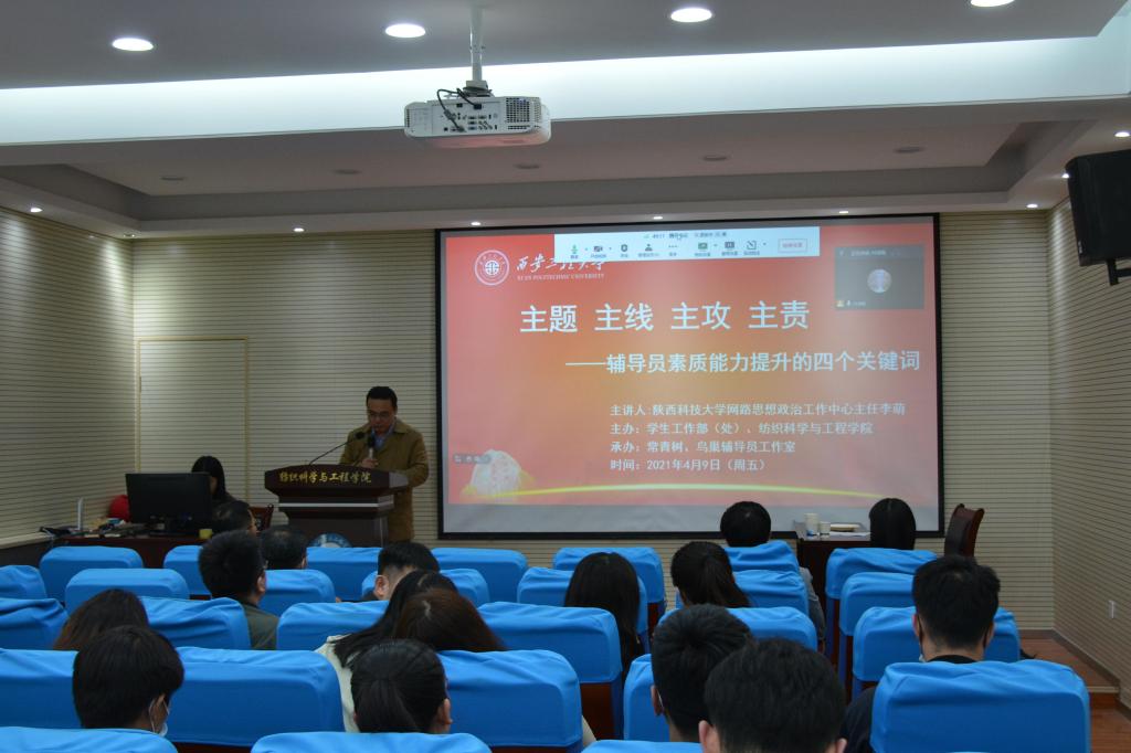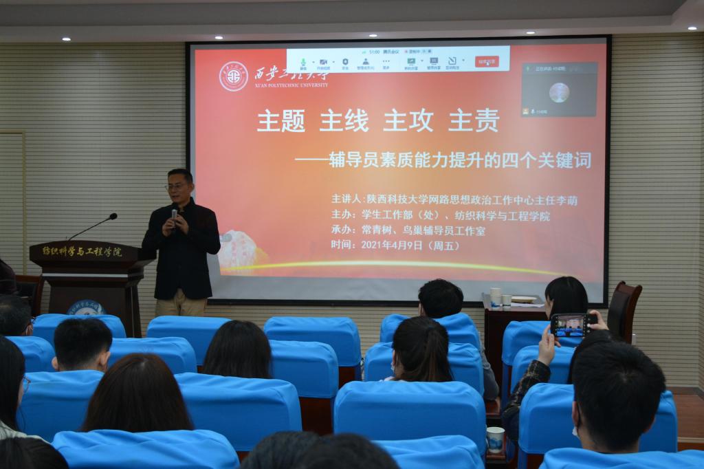 4月9日下午,公司在金花校区纺织楼姚穆报告厅举办公司2021年第1场辅导员业务培训。陕西科技大学网络思想政治工作中心主任李萌以视频会议的形式为公司辅导员作了题为《主题、主线、主攻、主责——辅导员素质能力提升的四个关键词》的报告。本次培训是公司辅导员队伍2021年第1场业务培训,由公司员工工作部(处)主办,常青树辅导员工作室、鸟巢辅导员工作室承办,近四年入职的辅导员现场集中参加,其他辅导员在线分散参加。委书记李伟出席培训会。常青树辅导员工作室主持人、伟德国际victor1946员工工作办公室主任赵勇进主持培训会。