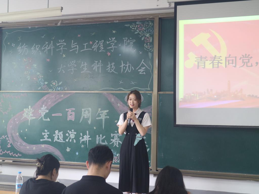 首先,郭西平为大赛致辞,她强调了本次活动的意义,希望各位参赛选手可以赛出水平、赛出精神,取得优异成绩。接着8位选手紧紧围绕“建党百年”进行演讲。2020级轻化工程2班王天琪王天琪以《难中奋进未来可知》为演讲题目,讲述了中国共产党的艰难历程。2020级轻化工程2班薛广超呼唤民族的崛起,讲述了建党百年,砥砺前行的故事。2020级纺织工程2班杨骁讲述了中国共产党经历的100个风雨历程。2020级纺织工程卓越2班严亚萍的《沐浴党的光辉》怀念了那艘满载希望与信仰的红船。2020级轻化工程2班焦申申的《党在我心中》让火红的七月燃烧着希望。2020级纺织工程5班张倩的演讲让我们看到了新时代的风帆,2019级轻化工程1班王一卓讲述了青年党员的感人事迹。每一位选手的精彩演讲赢得了现场观众热烈的掌声。经过激烈角逐,经过现场三位评委评审打分,最终,薛广超、王一卓获得一等奖;杨骁等三名员工获得二等奖:焦申申等三名员工获得三等奖。