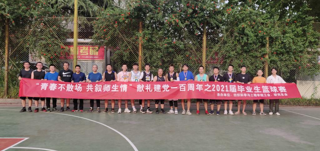 这是一个充满热情、挥洒青春的季节,美丽菁菁校园即将吹响毕业的号角。为了表达对毕业生的美好祝愿,给即将离开母校踏上人生征程的毕业生们留下一份美好的回忆;同时为了庆祝建党100周年,向党献礼,纺织科学工程公司于5月30日至6月9日期间,于网球场隔壁篮球场举办了“青春不散场共叙师生情”献礼建党一百周年之2021届毕业生篮球赛。不说再见,不话离别,小小的篮球传递着浓浓的师生情谊,青春永不散场。本次比赛团队有研三和大四各专业毕业生组成的员工代表队以及老师代表队。