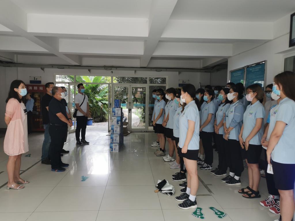 8月13日下午,伟德国际victor1946经理孙润军、党委书记李伟、党委副书记郭西平、学工办主任赵勇进及团总支书记付成程一行前往临潼校区慰问公司参与十四运开幕式群众演员工作任务的31名员工和带队教师。