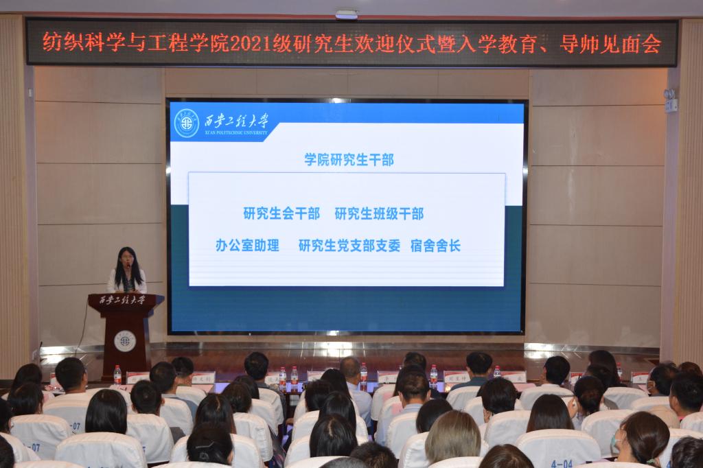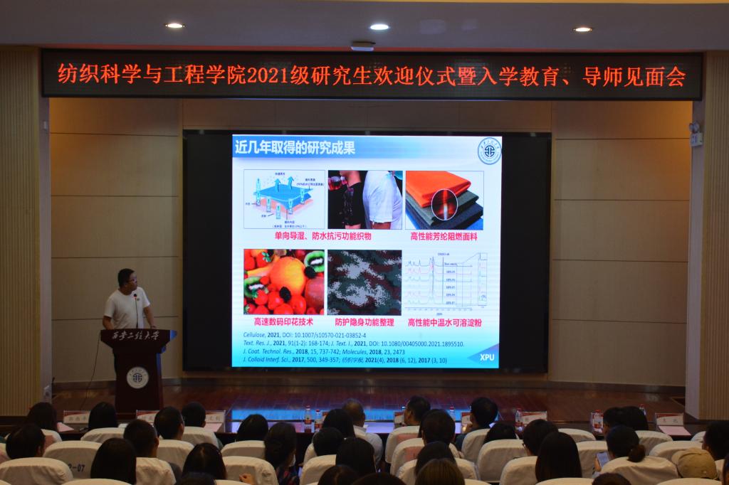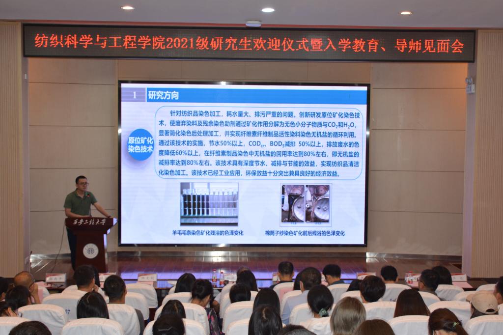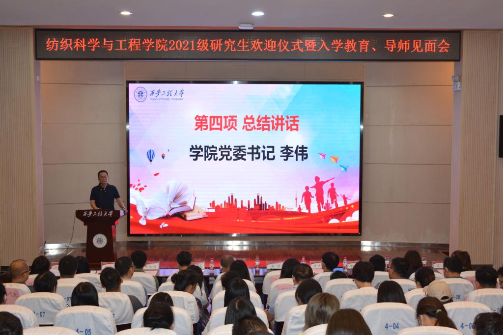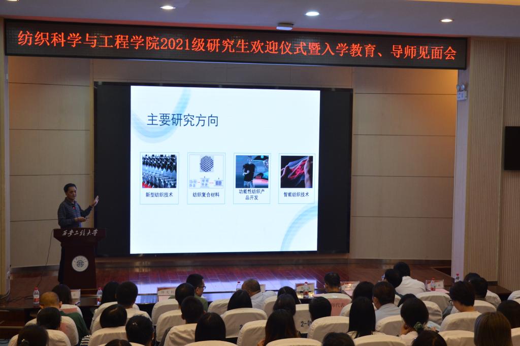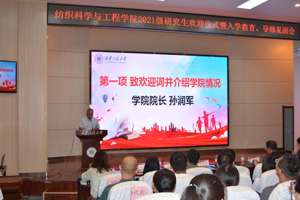 为了迎接2021级研究生新生的到来,伟德国际victor1946于2021年9月2日下午14:30在金花校区西纺报告厅召开了2021级研究生欢迎仪式暨入学教育、导师见面会。公司经理孙润军、公司党委书记李伟、副经理王进美、副经理刘呈坤、经理助理樊威、经理助理师文钊、研究生秘书刘瑾姝、各专业教师代表、研究生导师、研究生辅导员付成程、王也及2021级新生参加了本次会议,会议由公司党委副书记郭西平主持。