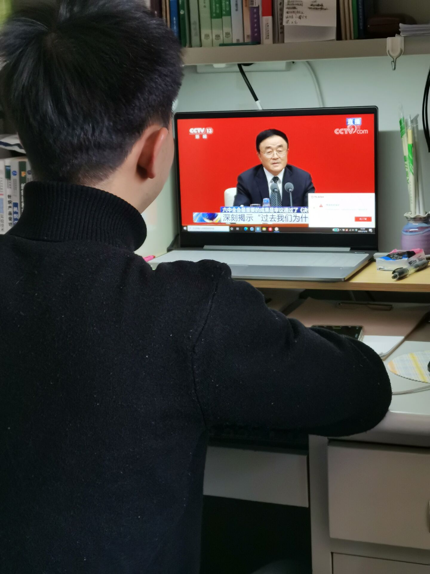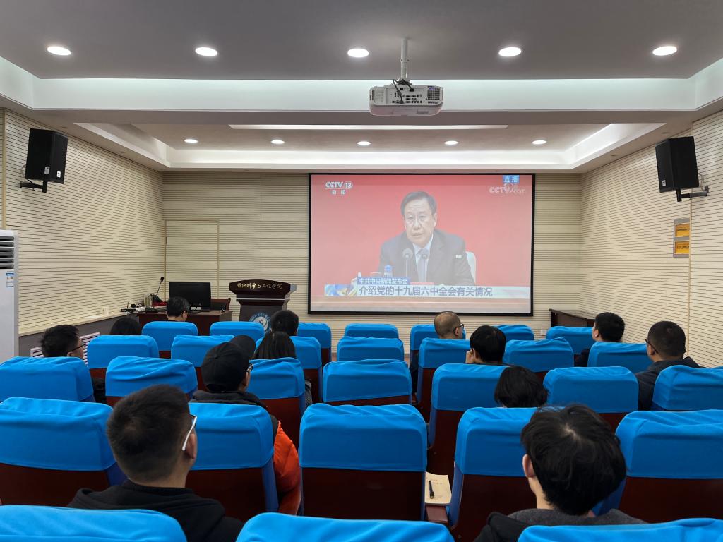 2021年11月12日,伟德国际victor1946师生党员分别在金花校区、临潼校区通过集中观看、自行观看方式观看中共中央新闻发布会,认真学习领会党的十九届六中全会精神。公司经理孙润军,党委书记李伟,党委副书记郭西平,副经理王进美、刘呈坤,经理助理樊威、师文钊,各党支部书记及研究生党员代表观看新闻发布会,部分本科生党员代表自行观看新闻发布会。