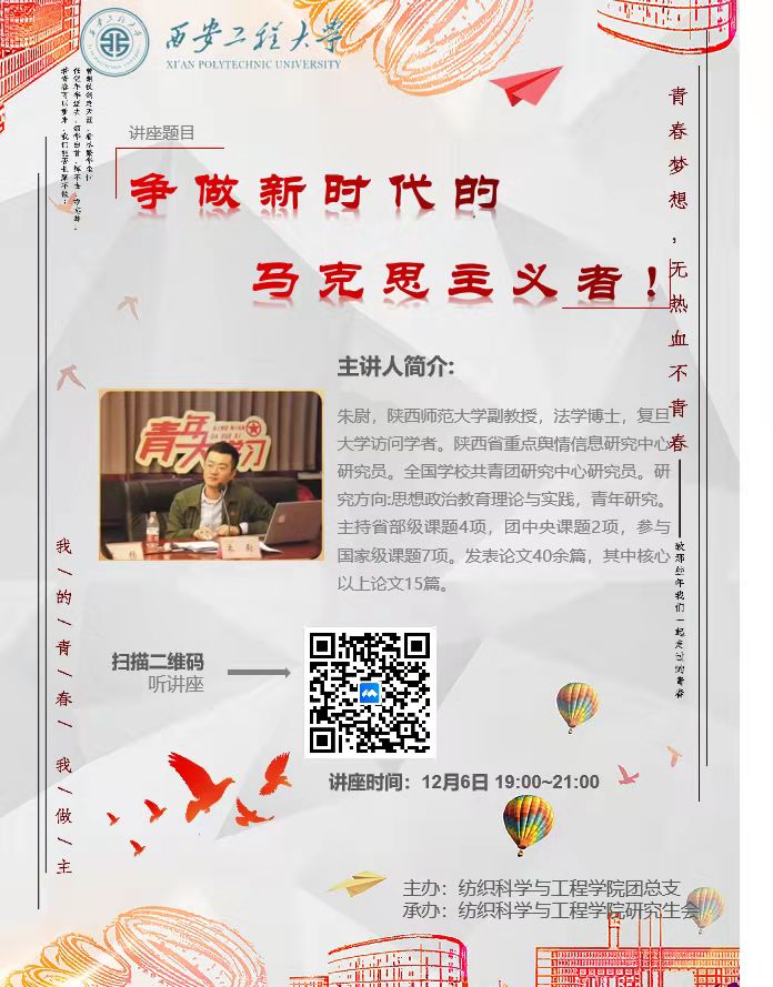 2021年12月6日,伟德国际victor1946邀请陕西师范大学马克思主义公司的朱尉教授,作题为“新时代如何做一名坚定的马克思主义者”的讲座。本次活动由公司三全育人导师团、团总支举办,公司研究生会承办。公司研究生党员、预备党员、入党积极分子聆听了讲座。