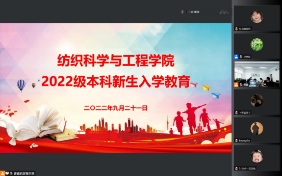 第二项为专业教育,纺织工程专业谢光银教授、张弦副教授、董子靖博士、薛涛副教授、张星副教授分别作纺织大类各方向介绍,为合理的老员工活与学习规划提供了权威指导,使新生了解本专业学科特点,做有特色、有针对的智慧学习者。