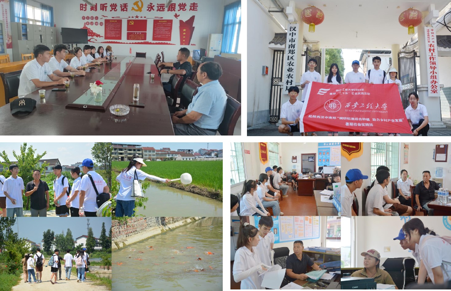 助力乡村振兴,建设美丽乡村。7月17日至22日,“调研稻渔综合种植,助力乡村产业发展”暑期社会实践团赴陕西汉中市开展实践活动。实践团以稻渔产业可持续发展为主题,由具有纺织工程、环境工程、材料科学与工程等学科背景的10余名员工和2名教师组成。该实践团2021年组建,2022年获评省级优秀服务队,在前两年调研的基础上,实践团再次出发,用青年担当助力乡村振兴。实践团分别前往了汉中市南郑区农业农村局、南郑区水产工作站(渔政站)、汉山街道草堰村等地开展调研。通过6天的调研,实践团走访了4个村子,5个政府部门,10余家家庭农场(养殖户),发放300余份调查问卷,对当地的产业模式、农业机械等现状进行了深入调研,实践团成员深刻认识到产业振兴是乡村振兴战略的基础,一头连着农民群众的“钱袋子”,一头连着乡村振兴的动力后劲。因地制宜发展特色产业,形成绿色安全、优质高效的乡村产业体系,才能为农民持续增收提供坚实的产业支撑。