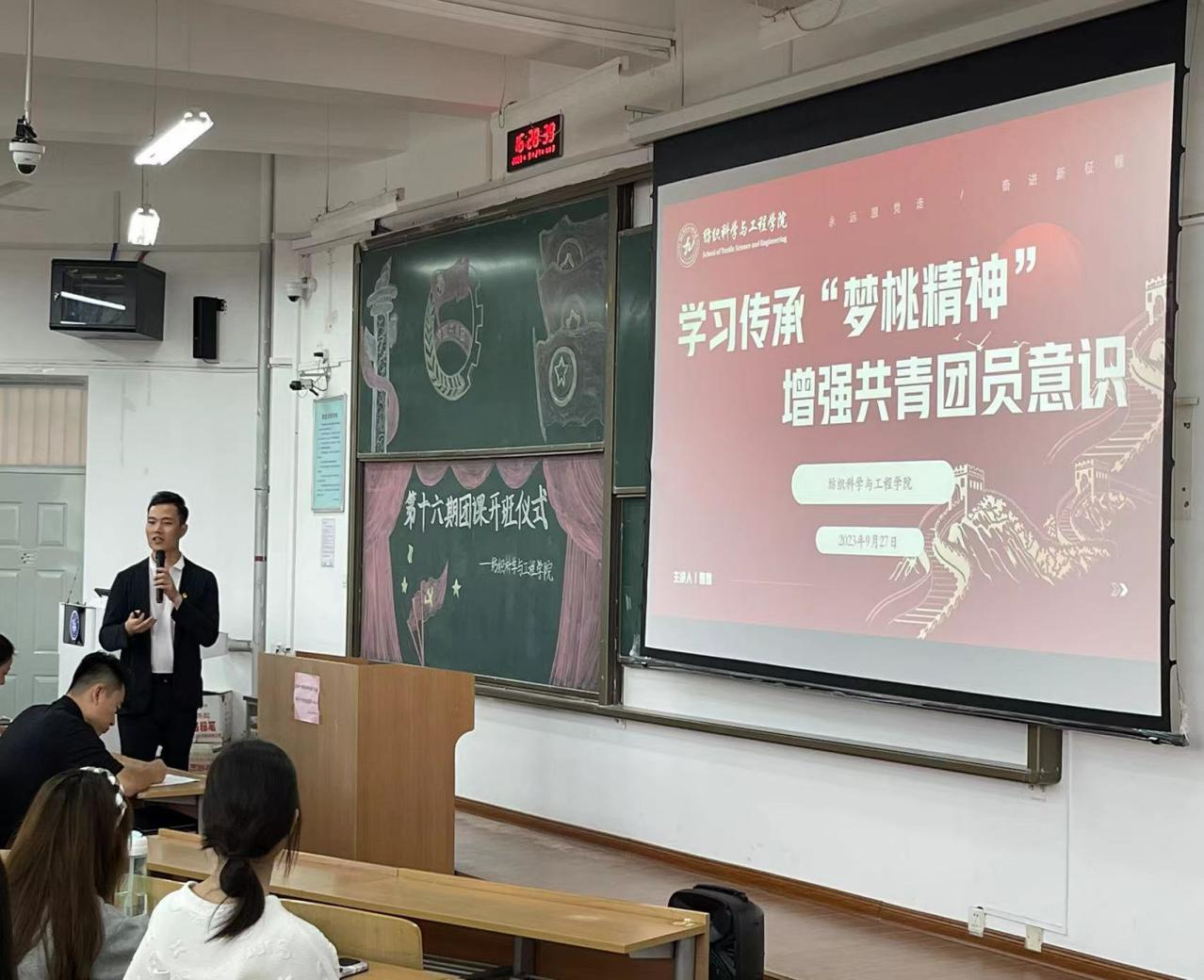开班仪式结束后,曹鑫为全体学员带来第一讲《学习传承“梦桃精神”,增强共青团员意识》。他从“梦桃精神”的内涵开始讲起,号召大家要在“高标准、严要求、行动快、工作实、抢困难、送方便”和“不让一个伙伴掉队”的梦桃精神鼓舞下,践行“厚德弘毅,博学笃行”的校训精神,做新时代的优秀青年,用热情的青春力量,不负青春,不负韶华,不负时代。随后他带领大家共同学习了基础团务知识,为大家介绍了公司团总支的情况。
