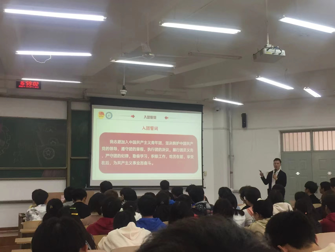 在激扬嘹亮的团歌声中开班仪式正式开始,主持人介绍了本次团校培训的背景,曹鑫介绍了培训安排,强调了培训纪律。