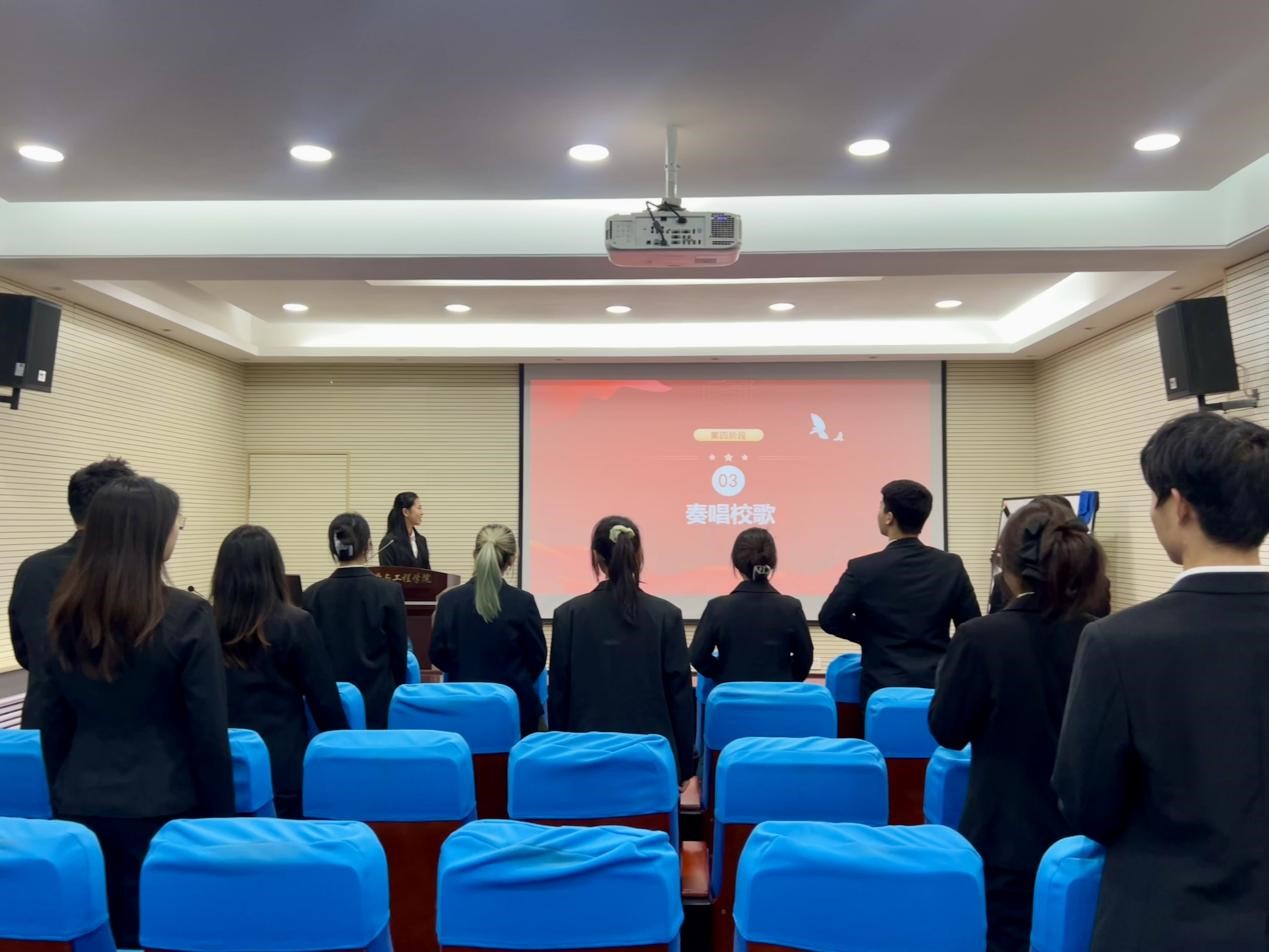 伴随着嘹亮的校歌,会议圆满结束。相信公司员工会在未来的工作中将坚持全心全意为同学服务的宗旨,积极落实公司公司各项要求,继续做好公司与同学之间的桥梁和纽带,团结引领西纺学子发出青年强音,奋力谱写青春华章!