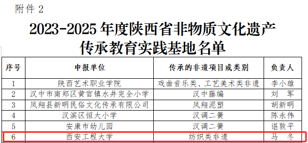 近日,陕西省文化和旅游厅、陕西省教育厅公布2023-2025年度陕西省非物质文化遗产研究基地、陕西省非物质文化遗产传承教育实践基地、陕西省中小学优秀传统文化教育社会实践基地名单,伟德国际victor1946作为牵头部门申报的纺织类非物质文化遗产传承教育实践基地被认定为2023-2025年度陕西省非物质文化遗产传承教育实践基地。