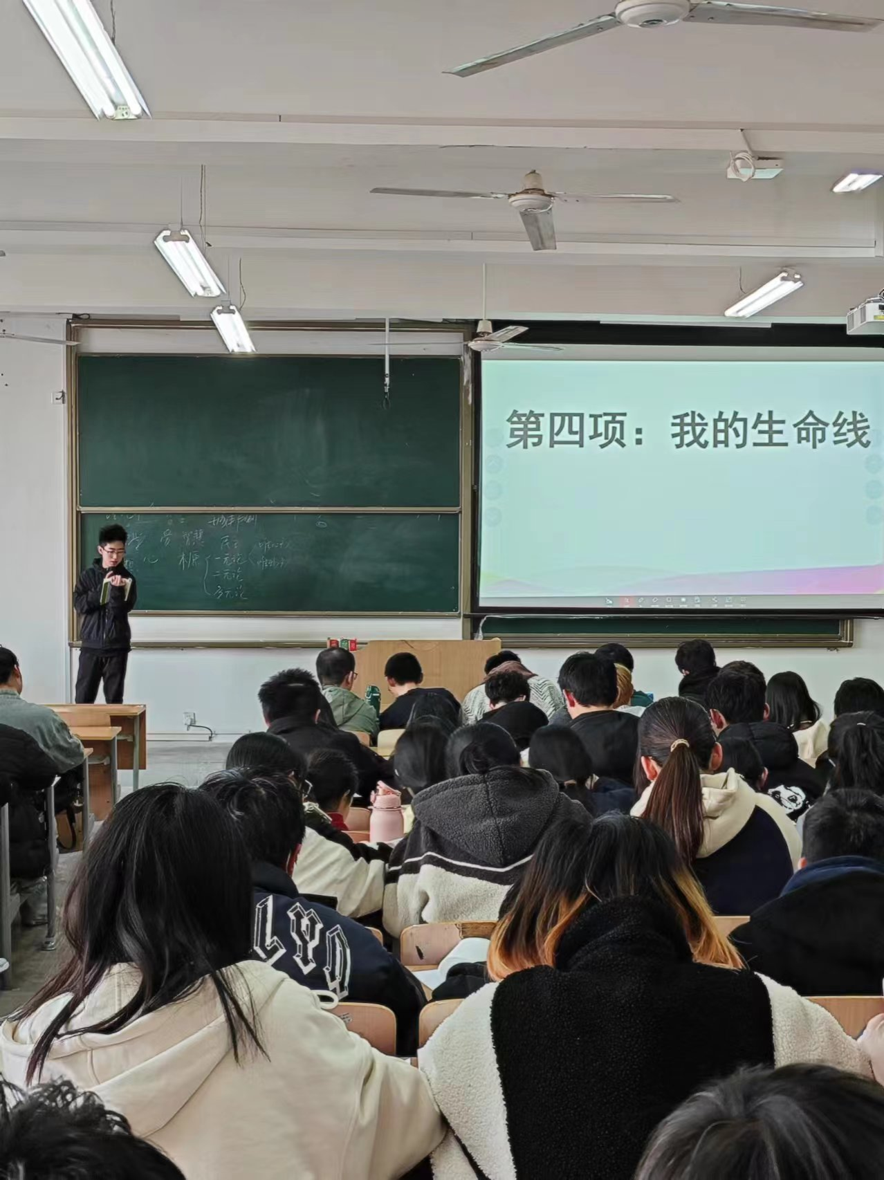 最后,董涛鸣引导大家绘制自己生命线,先根据自己的人生经历在生命线上标注出自己人生中快乐或悲伤的事,并勾勒自己对未来的期望或可能会发生的挫折和困难,教会同学们成长为最好的自己通常要经历风雨的洗礼,要保持克服困难的勇气和信心,从而促使心理成长、变得更加强大。