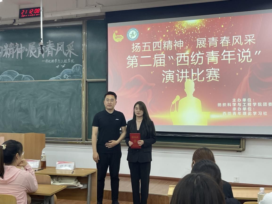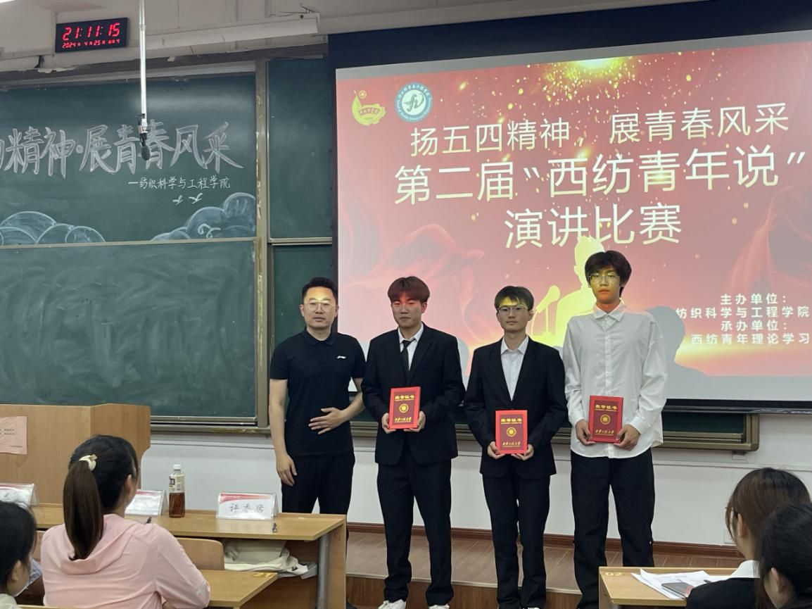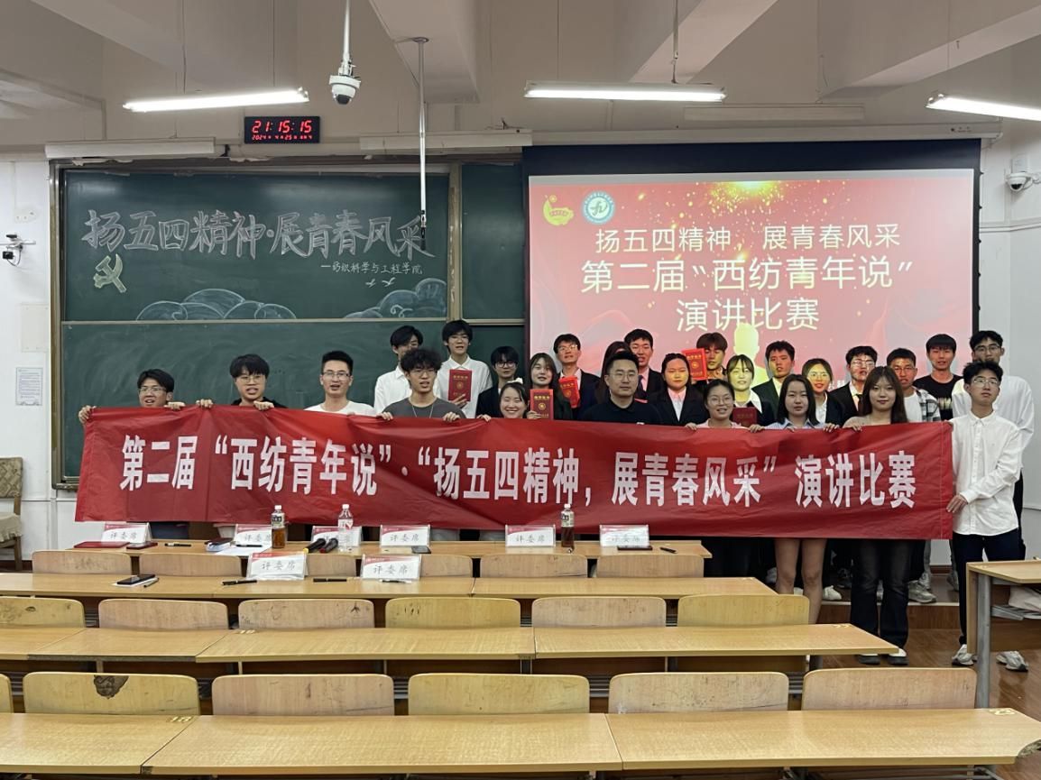 “每当看到鲜艳的五星红旗冉冉升起,一种振奋、一种激昂、一种骄傲、一种自豪的心情便会油然而生!”为了纪念五四运动,激发同学们的爱国热情和社会责任感,在五四青年节到来之际,伟德国际victor1946于4月25日在临潼校区B333举办第二届西纺青年说演讲比赛,共有14名选手参赛,2023级辅导员赵森和2023级全体本科生参加活动。