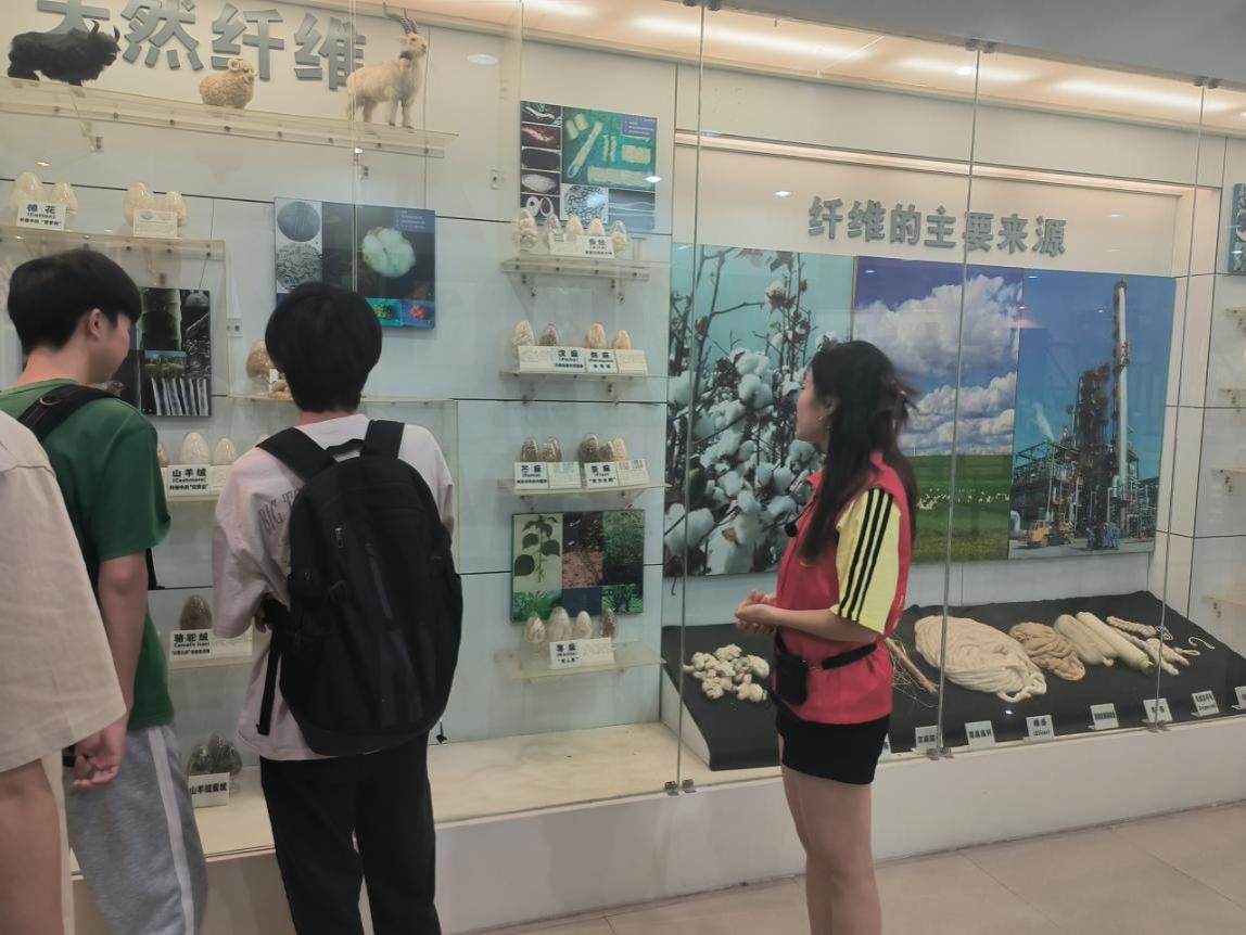纺织科普馆通过大量的图片和实物,介绍了从纺织纤维—纱线—纺织技术—纺织面料—成果,使同学们对纺织的整个工艺过程有了一个系统的了解和认识。